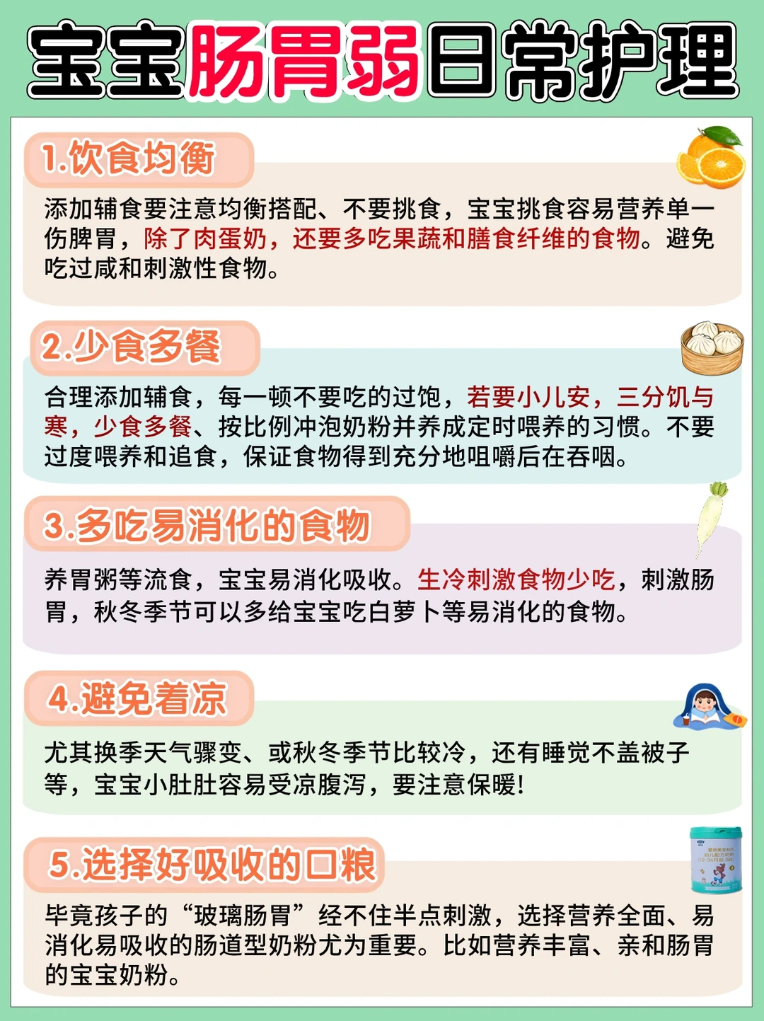 肠胃弱的宝宝尽量选择更易消化吸收的成分,比如