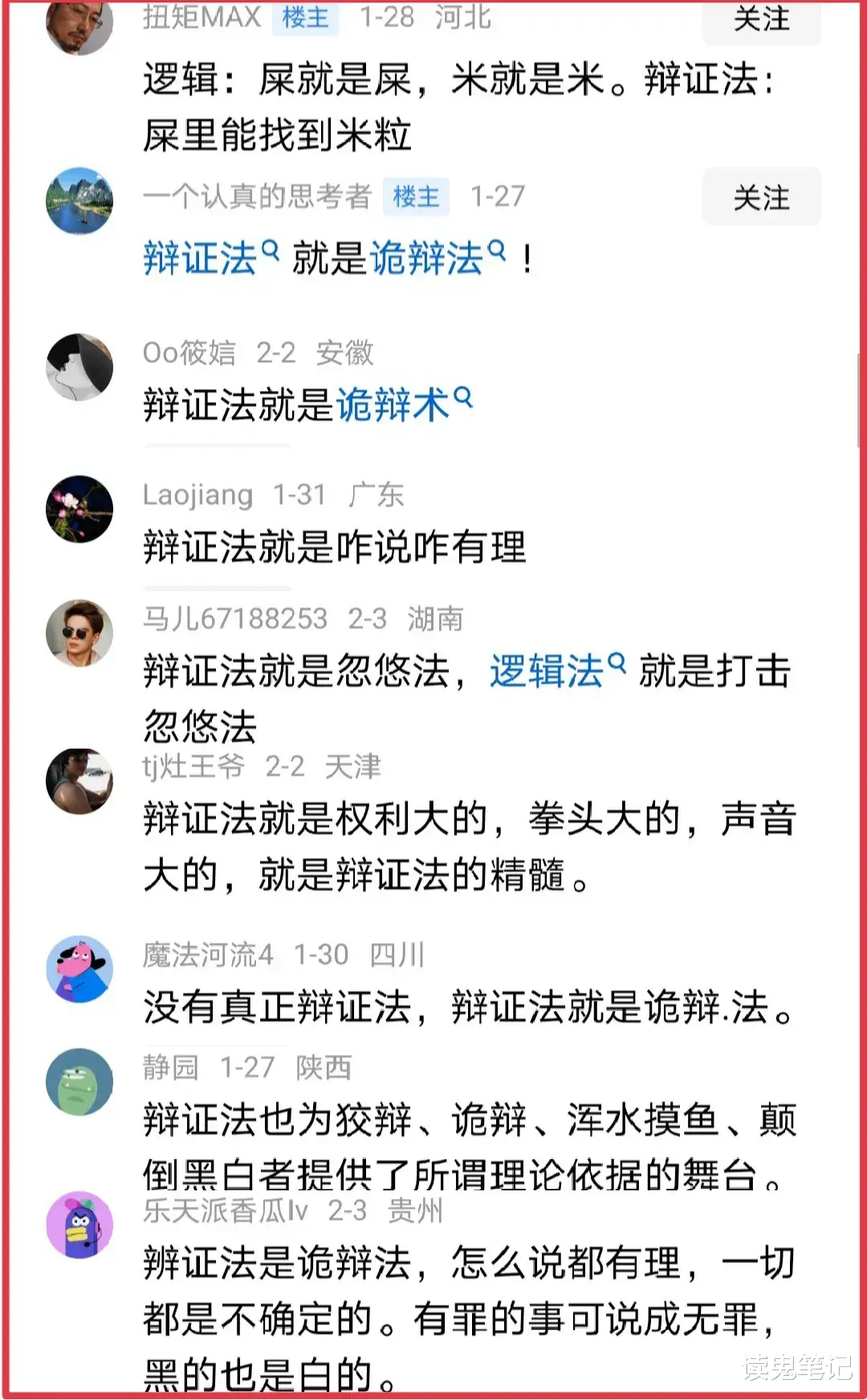 这些反对和攻击辩证法的人,无知地认为辩证法来自西学,甚至点名马克思与苏联,称为苏式逻辑。于此可见其真实用心,哪里是在攻击什么辩证法,明明剑指意识形态。而其实,辩证法中国自古有之,这点并不算高深的智慧,我们的老祖宗岂能没有。