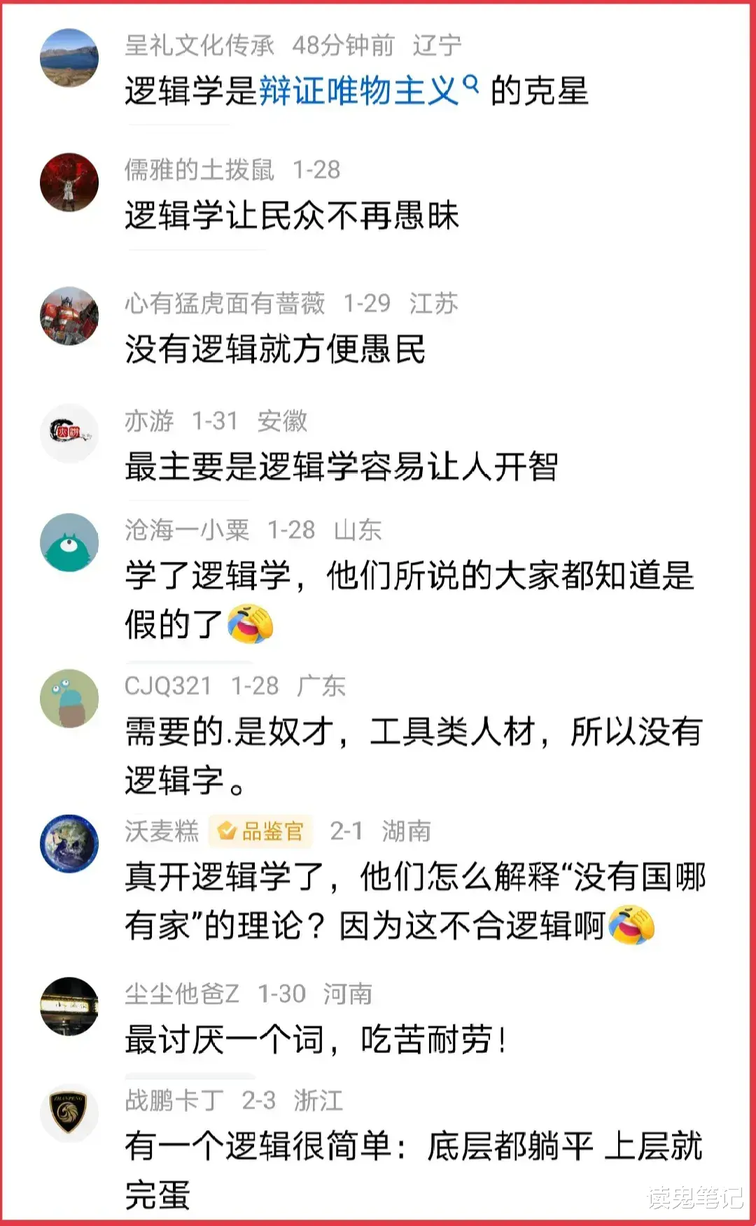 甚至有人说,逻辑学让人不再愚昧,让人开智,不开设逻辑学这门课程,就是想要愚民,为了好忽悠、好统治,而开设逻辑学就骗不到人了,人都知道是假的了。