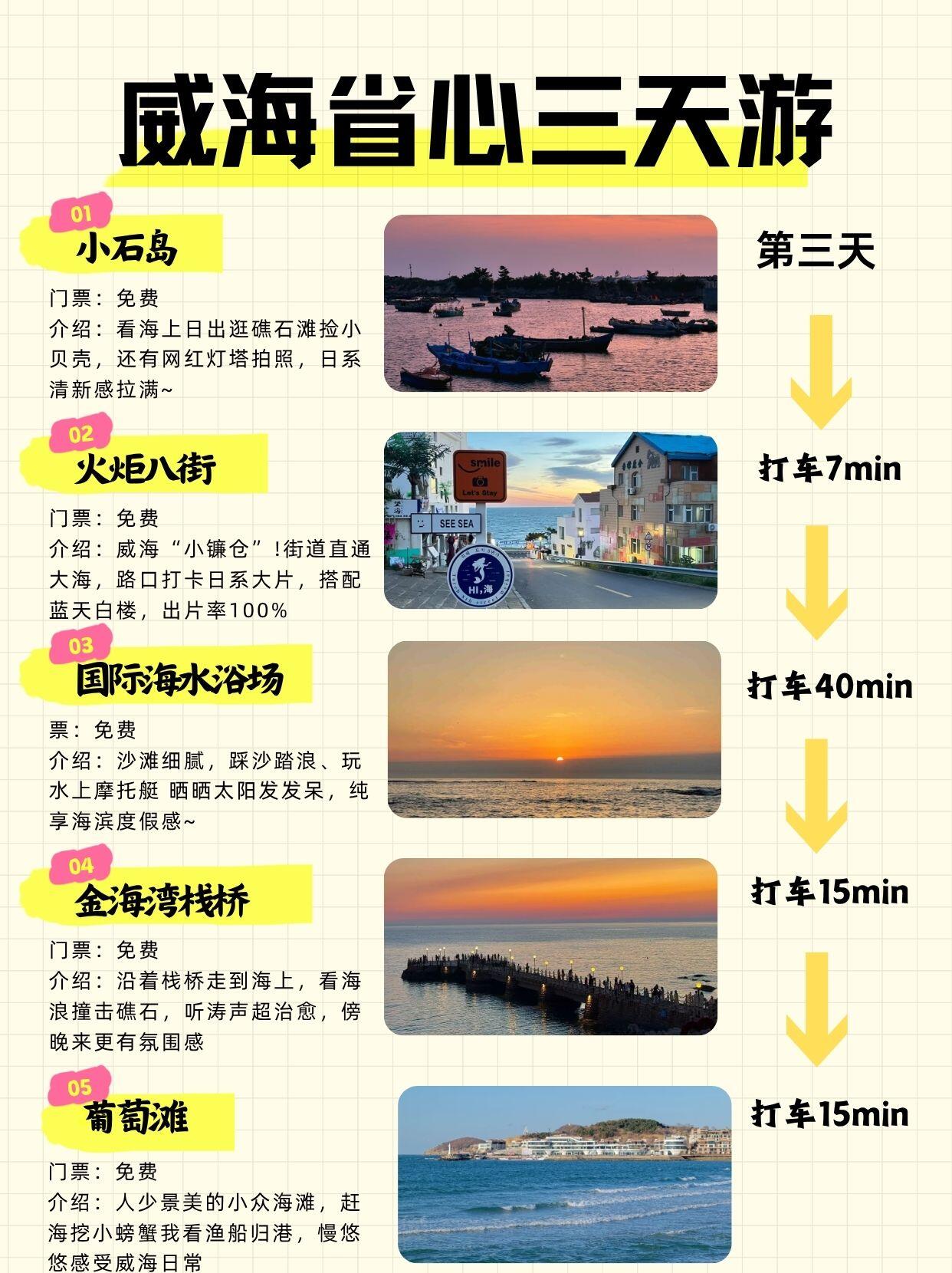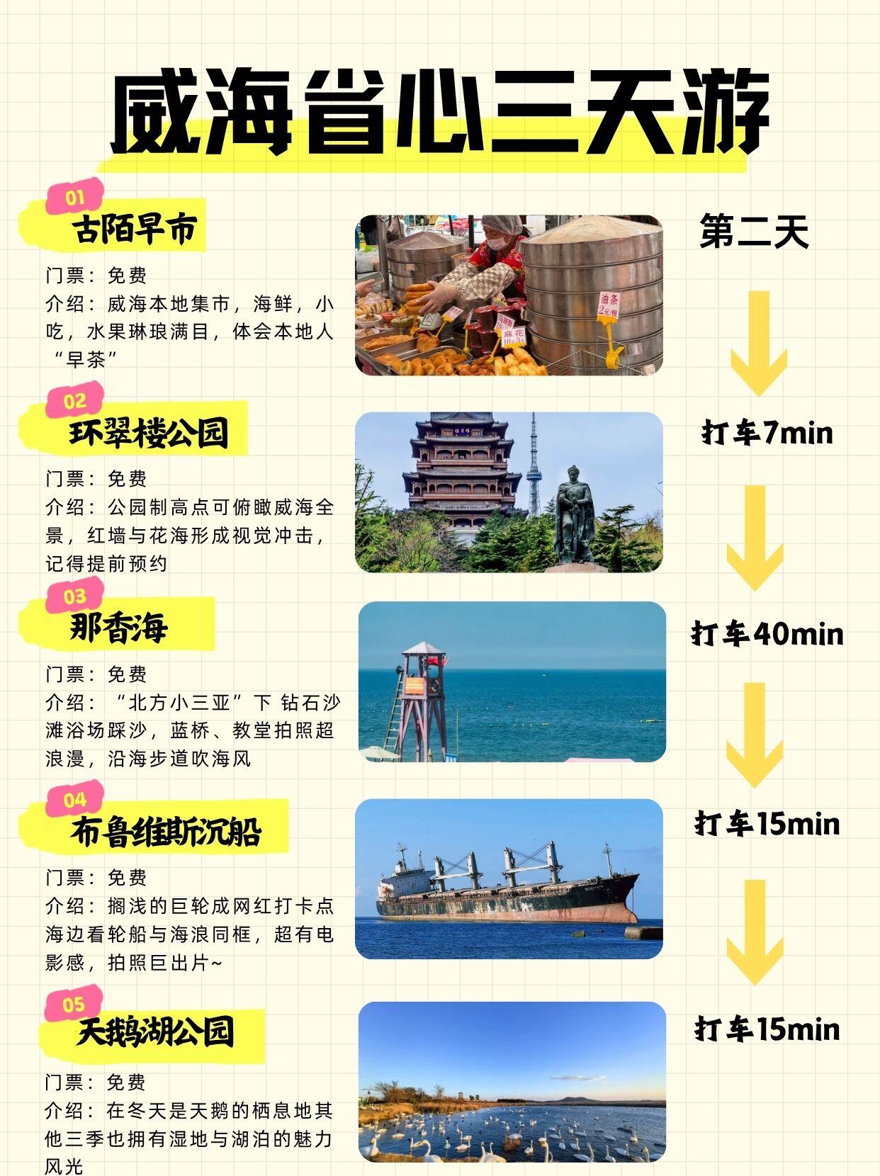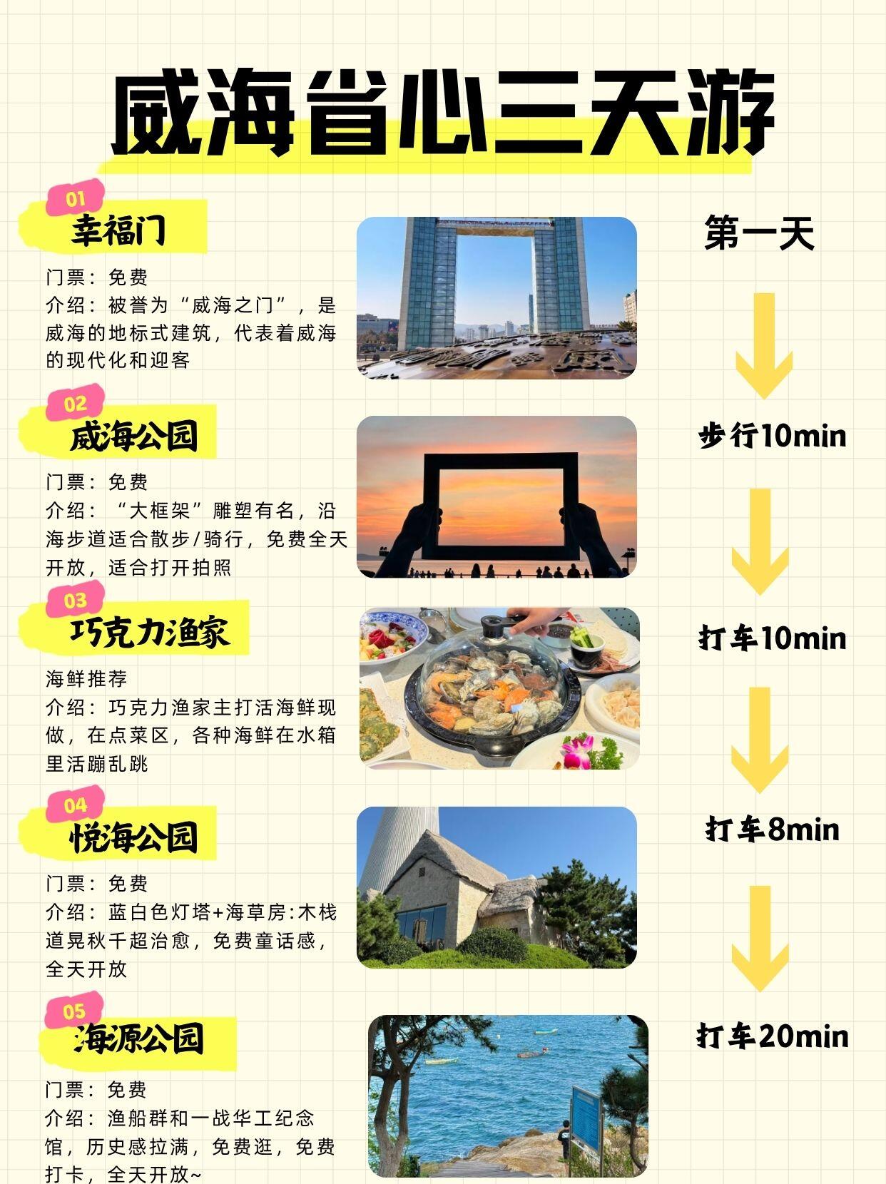 𝐃𝐀𝐘𝟏 城市海岸线幸福门→威海公园→巧克力渔家(超美味蒸煮海鲜可以尝尝)→悦海公园→海源公园(全程打车超顺路 景点都免费!)
