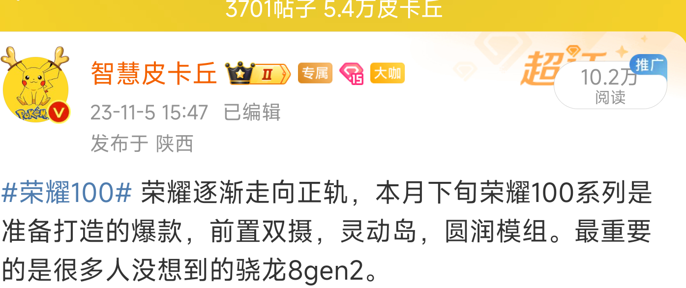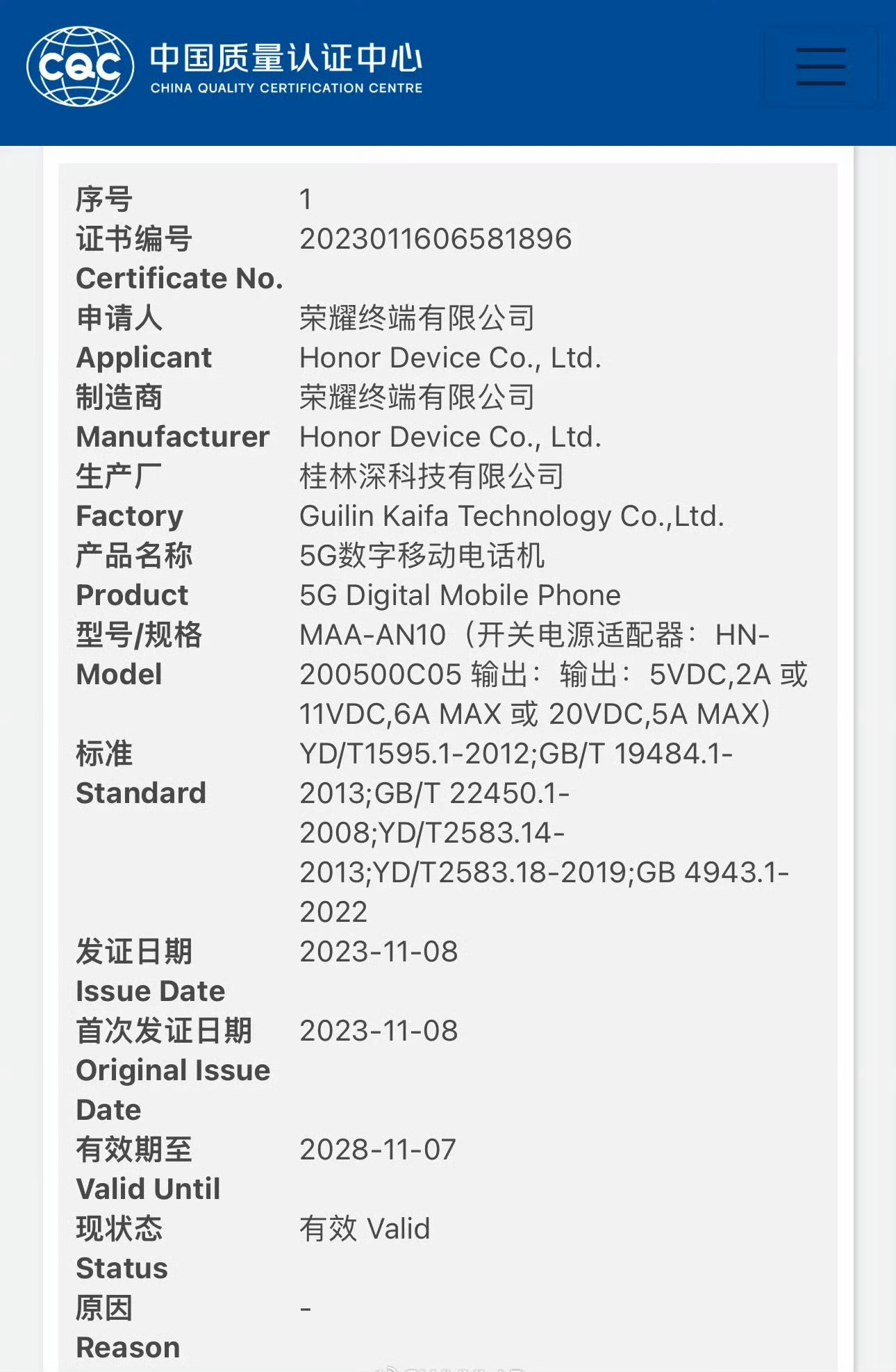 #荣耀100# 荣耀100系列入网了,100w快充,超长续航。11月23号发布。