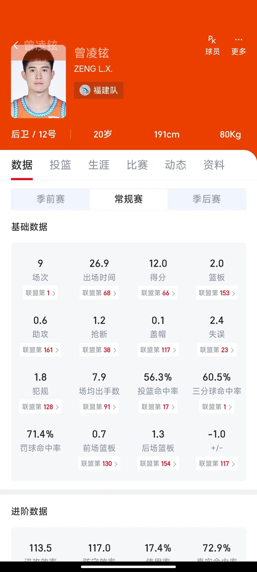 虽然这赛季CBA的很大热度贡献都来自杨瀚森等几个一年级新秀身上。但有个二年级秀大家可能忽略了,是福建队的曾凌炫。目前曾凌炫三分球命中率排名联盟第一,并且投篮热点图显示,他在三分线外每个区域都能把球投进去,非常准! 曾凌炫这赛季的爆发也是福建浔兴战绩提高较多的原因之一,如果未来两个赛季曾凌炫都能保持如此的投射水平,并且控制好自己的失误的话,那将会成为福建队的重要核心,和陈林坚组成双枪,甚至有可能进入国家队。 #中国篮球# #中国男篮# #CBA联赛#
