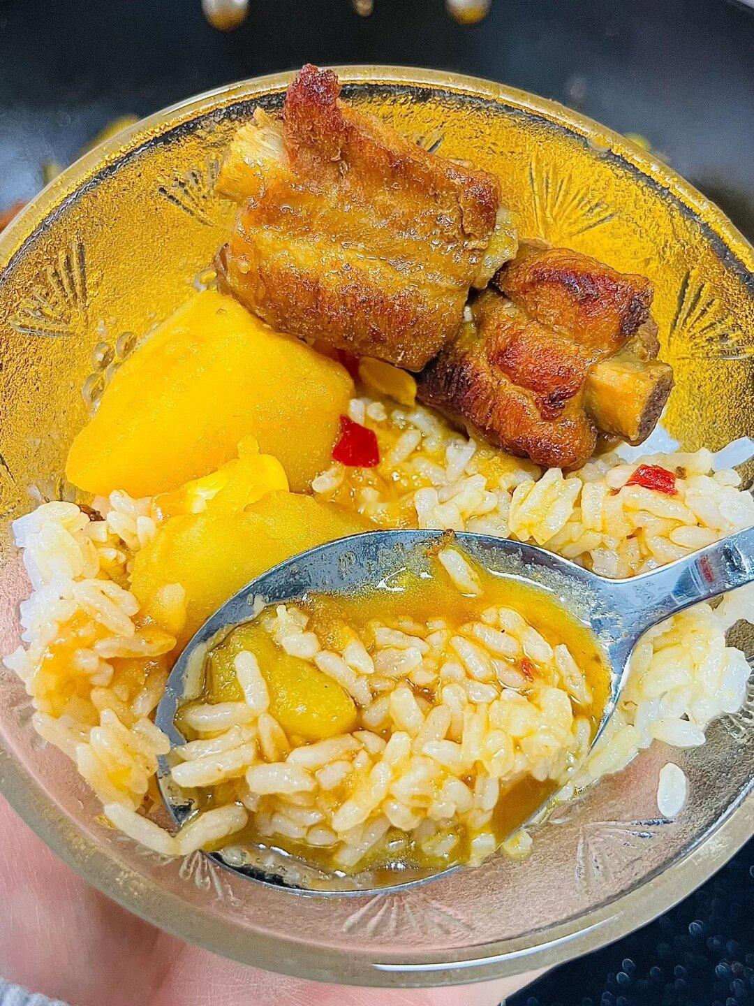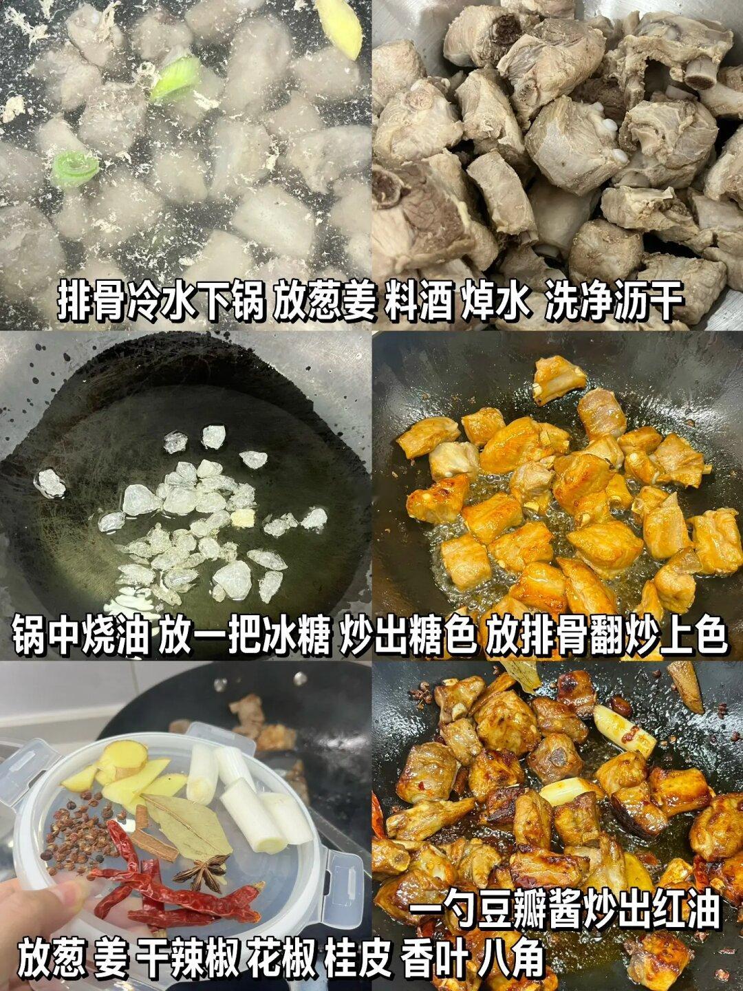 拌饭太好吃啦!!土豆排骨玉米搭配太棒啦! 🌟食材: 排骨、土豆、玉米 🌟步骤: 1⃣️排骨冷水下锅,放葱、姜、料酒焯水,捞出沥干水分 2⃣️锅中烧油,放入一把冰糖,炒出糖色放入排骨翻炒,再放入葱、姜、干辣椒、桂皮、香叶、八角、花椒,一勺豆瓣酱炒出红油 3⃣️倒入开水末过排骨,加入生抽,中火炖煮30分钟,放入土豆、玉米、适量盐,继续炖煮10分钟 4⃣️放少许鸡精,大火稍微收汁出锅✅