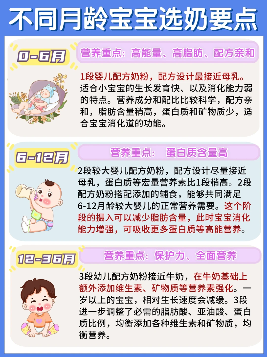 其实,早阶段选奶并没有一个固定标准,需要综合考虑:符合国家标准是基础,还要看宝宝自身发育情况。这2点背后都有一个核心‼️关键点,就是建议家长先学会看奶粉配方表,了解奶粉基础配方和强化配方对宝宝有哪些作用,在国家标准前提下再根据自己宝宝的实际情况来进行选择奶粉。