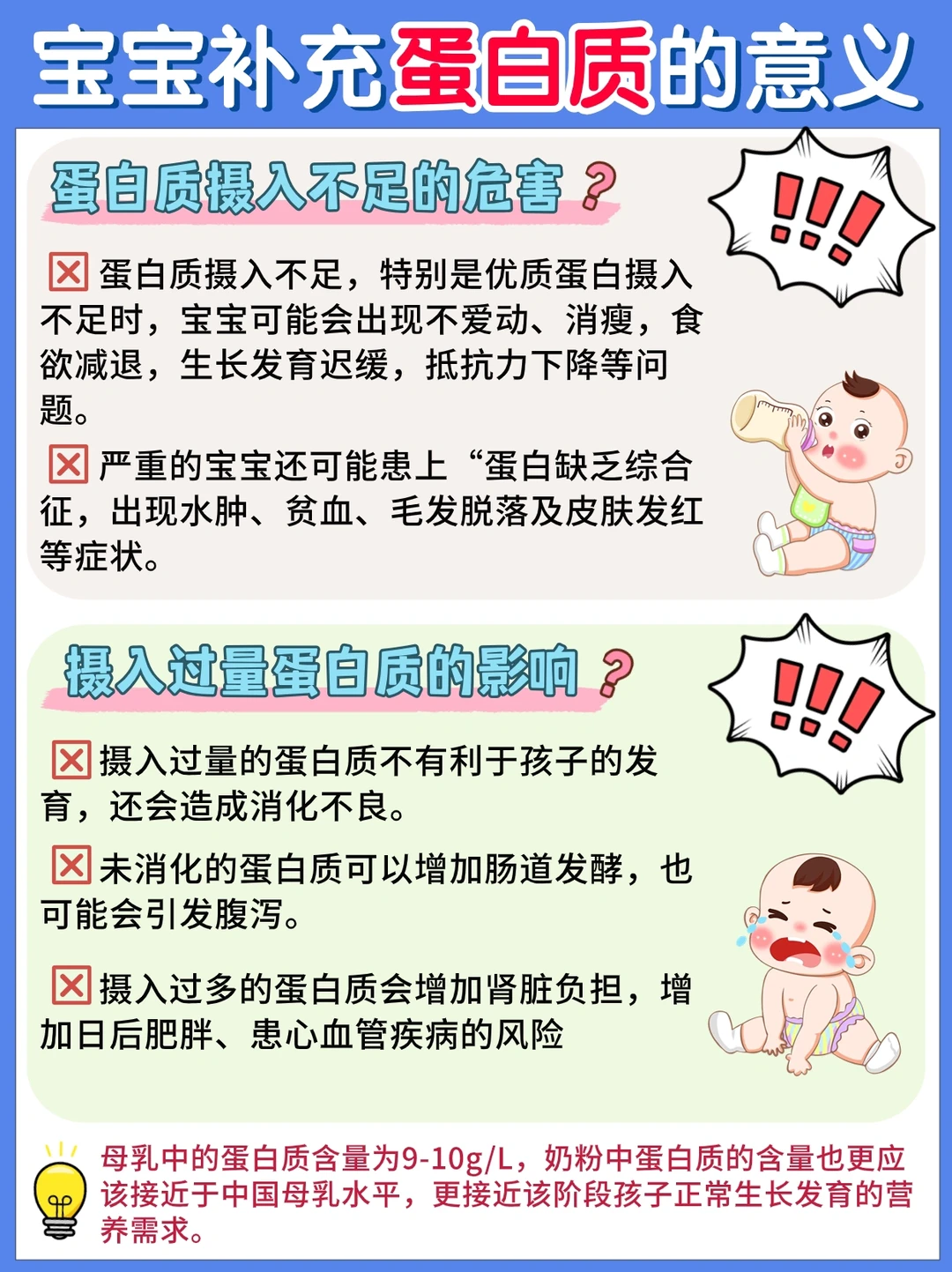 这点有很多父母🧑就不太理解!蛋白质确实是很重要的营养,是构成身体的基石,但蛋白质摄入过高、肠胃无法吸收会对身体带来负担,也会引起潜在的超重、肥胖以及肾脏负担。为避免造成宝宝过多或过低摄入蛋白质,建议不要盲目追求过高的蛋白质含量,也建议给宝宝选择好吸收的乳清蛋白。