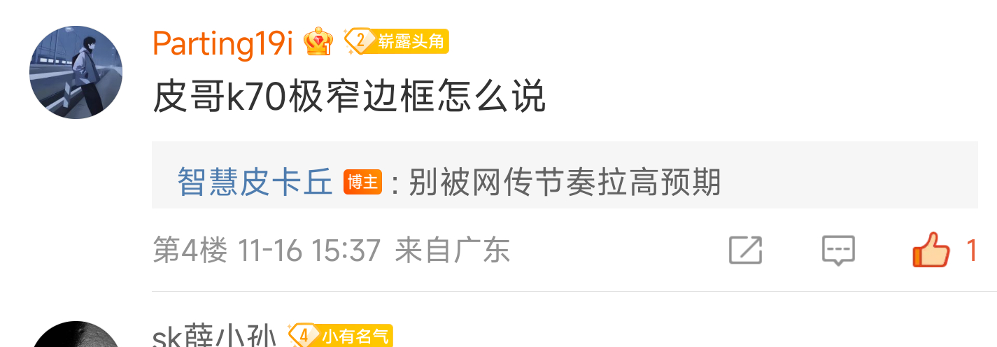 #redmi k70# 红米k70系列和大家说过主打2k屏,但是大家别被网传的极窄拉高预期呀,然后再说做的不行,这样就跑偏了。看2k,玻璃后盖也不错。本月来。