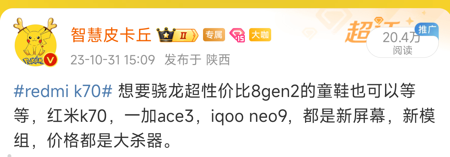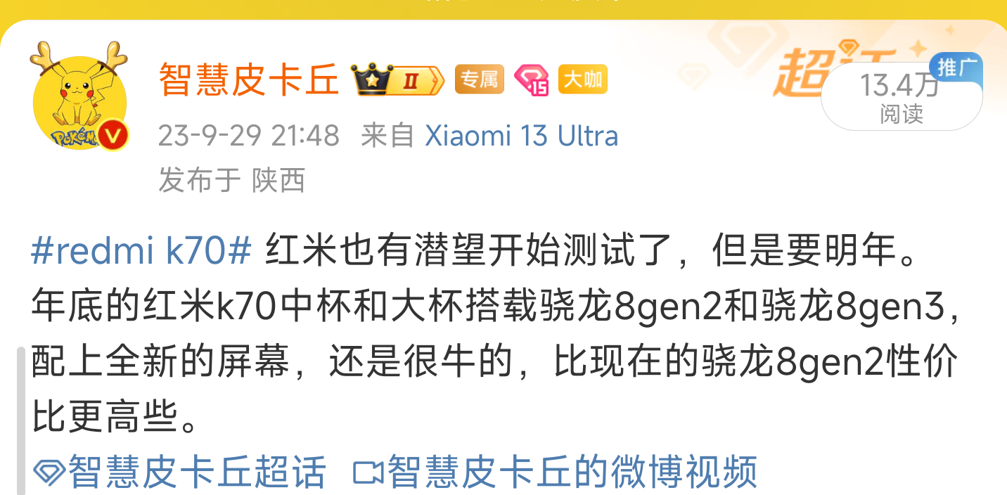 #红米k70# 预算中端的童鞋,确实推荐考虑骁龙8gen2,接下来的新机确实配置拉满。