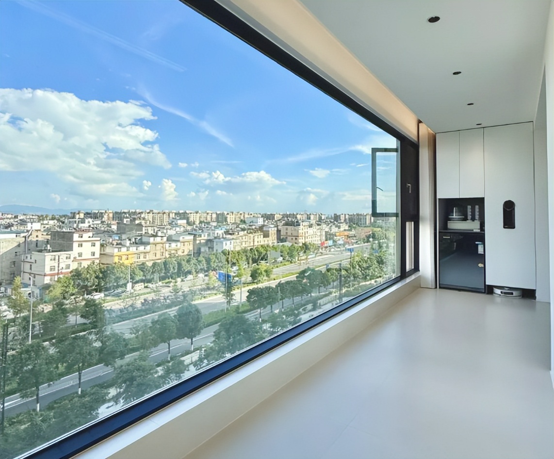 当然,人们选择做超大落地窗,最主要的就是它的颜值非常高,不管是从室外还是室内去看,窗户的整体性非常好,没有任何的窗户框遮挡,在早上或者傍晚你都能去欣赏外面美丽的景色,真的太幸福了。