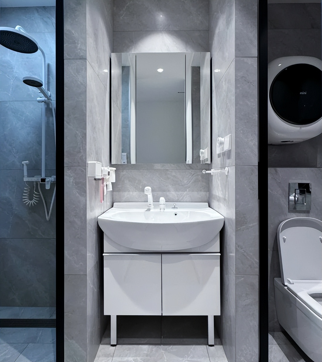 这种分离方法很简单,只需要将洗漱区、沐浴区、入厕区三个功能区给全部分开就行了!