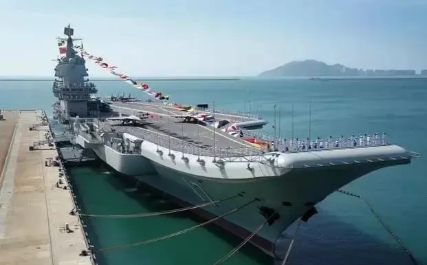 广东舰,满载排水量10万余吨,可搭载90余架舰载机