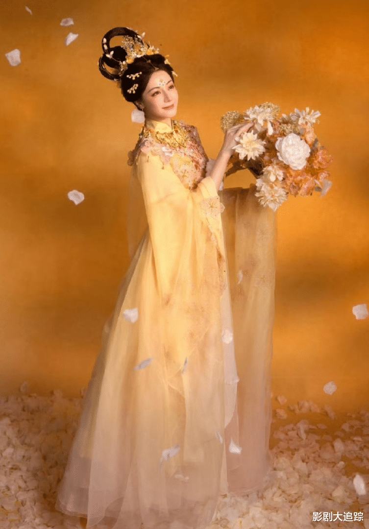 晚会上,她一身黄色轻纱搭配嫦娥复古发髻,手提花篮缓步而出,简直就是嫦娥仙子在世重现,身披霞光,抬头微笑间便好似要随风而去,让人忍不住想要去挽留!