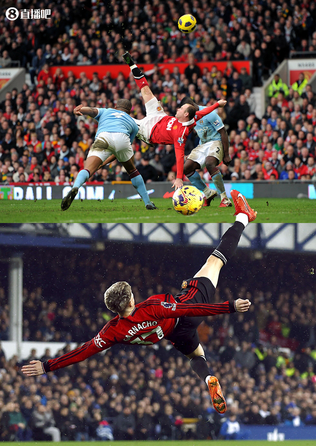 加纳乔完美复刻曼联名宿鲁尼的倒挂金钩,帮助球队首开记录!