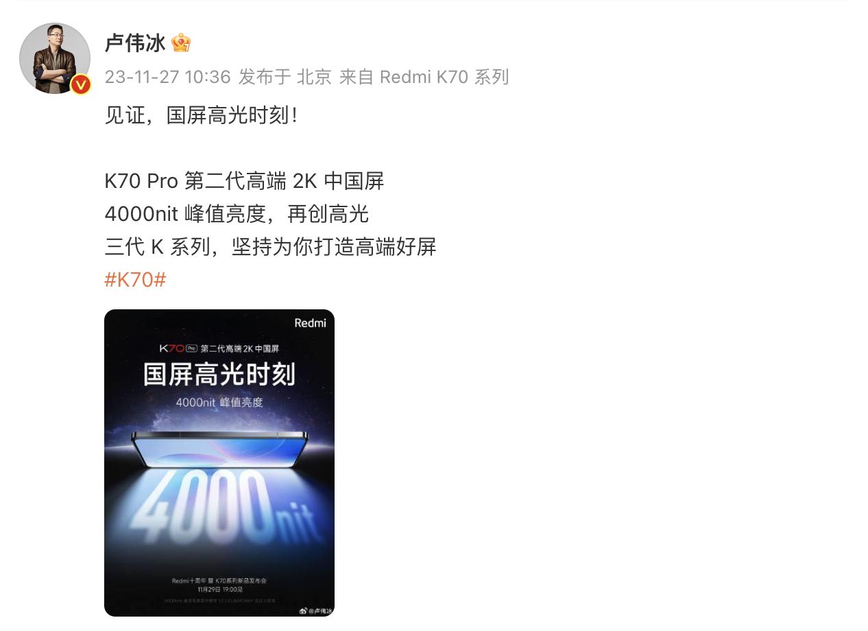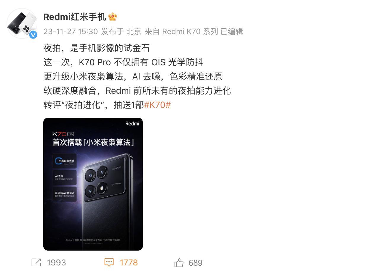永远相信美好的事情即将发生,现在Redmi K70系列的预热让人再次想起这句标语,相信很多人还记得。不只出色的外观设计和质感,Redmi K70系列在屏幕和影像方面的升级堪称进化。 小米历来注重屏幕素质,始终坚持采用全球顶级屏幕,而且好屏幕也舍得给Redmi用,比如这次的Redmi K70系列,采用最强的2K中国屏,这是Redmi K系列连续三代坚持做2K屏,代代好屏,今年最好中国屏,持续引领屏幕进化,助力国产屏幕崛起。何以称为最强中国屏?这块屏幕两项参数同时登顶,峰值亮度高达4000nits,具备3840Hz超高频PWM护眼调光能力。 好屏还护眼,Redmi K70系列屏幕首发搭载“小米青山护眼屏”技术,是首款医工融合认证,医学角度拆解用眼问题,工学角度技术解决,推动护眼标准全面进化。而且这是一块直屏,对于游戏等操作十分友好。总的来说,Redmi K70系列这块屏幕树立起了行业新标杆,同档机型中堪称无敌。 更出色的是影像能力也再次进化了。Redmi K70系列搭载了小米同系的“光影猎人800”,与小米14同宗同源,完全承接小米高端旗舰影像能力,升级力度史无前例。了解手机摄影的都知道近几年小米在影像上的进步可以说是独步天下,小米给Redmi K70系列赋能的还有小米影像大脑、夜枭算法,Redmi K70系列的影像能力表现十分值得期待。 外观、设计、质感、屏幕、影像全面升级,Redmi K70系列迎来史诗级进化,可是勾起米粉们的购机欲望了。