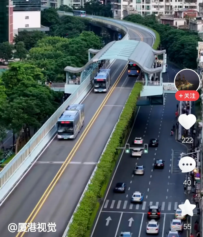 厦门地方小,人口比较集中。brt成本太高了,专用车道没有红绿灯。多数地方都是高架桥