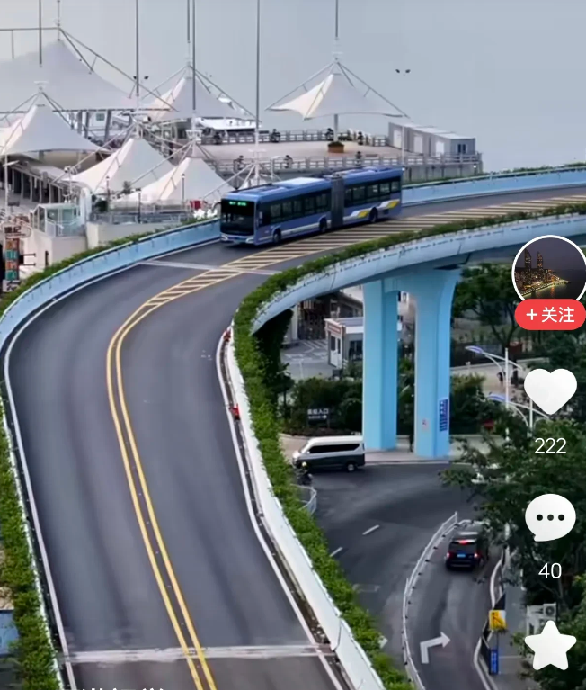 听说原本就是要造轻轨,结果后来没批,但是高架建到一半又不能拆了,就干脆铺沥青跑公交了。。