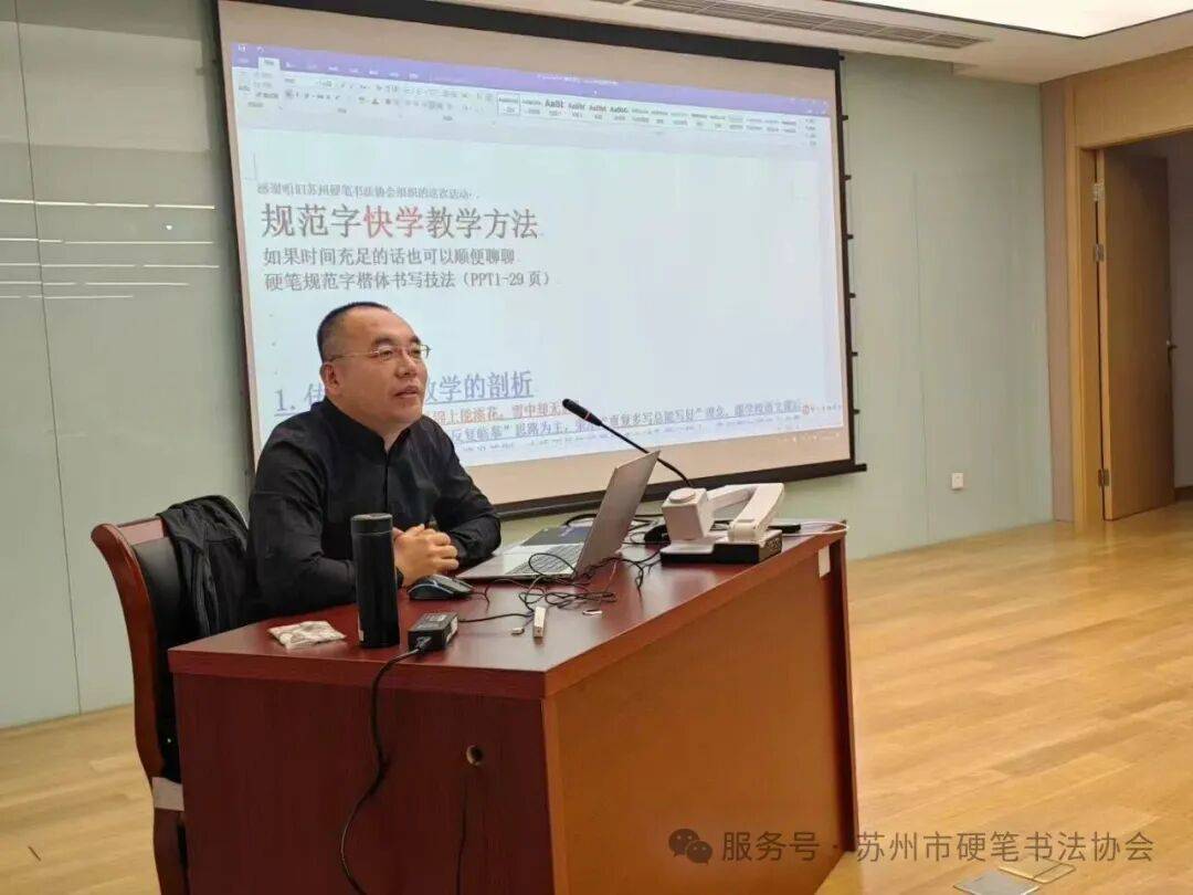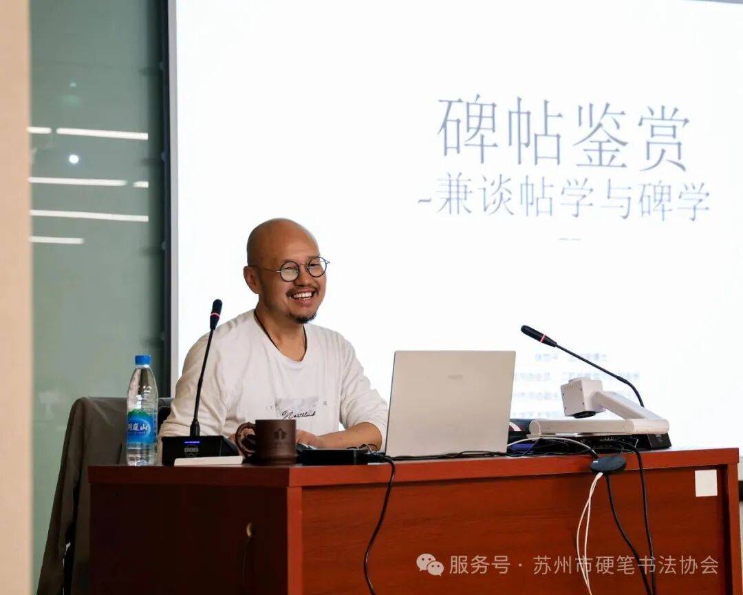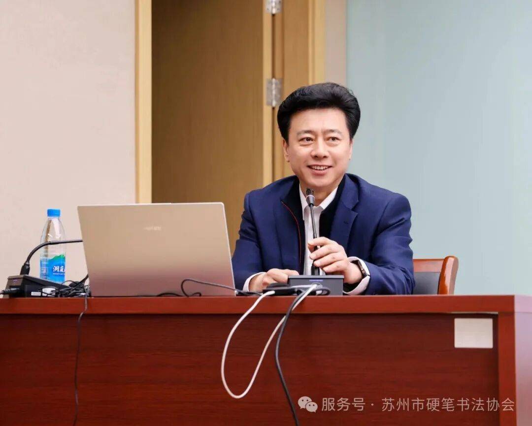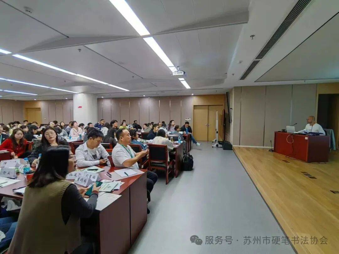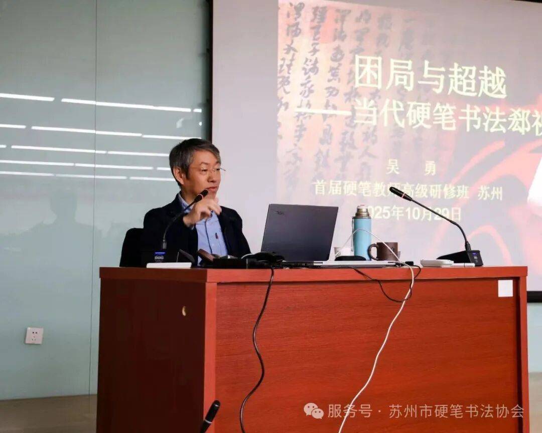 随后,江苏省书法家协会理事、江苏省硬笔书法家协会主席吴勇,以《困局与超越:硬笔书法概论》为主题,全面介绍了当前硬笔书法艺术的时代特征和发展态势,尤其是学员们所关切的各类参赛技巧和创作要领,令大家受益匪浅。