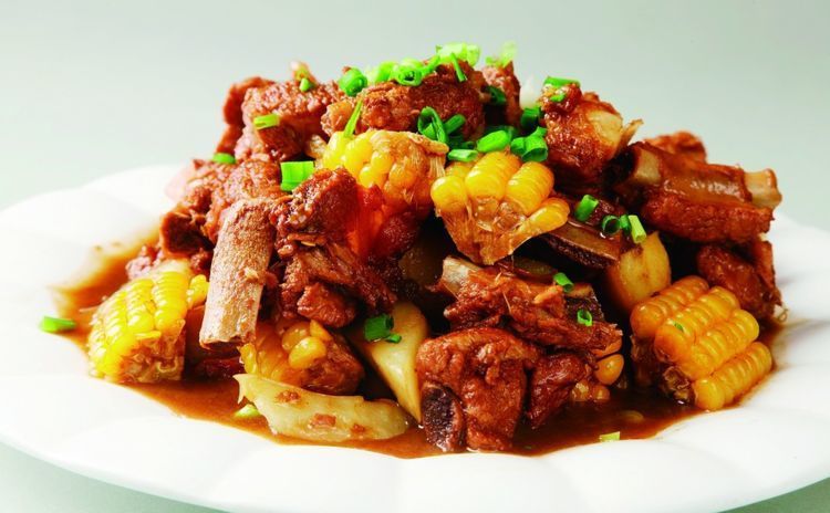 6.大火烧开,放入玉米小火炖30分钟,加适量盐,继续炖30分钟即可。
