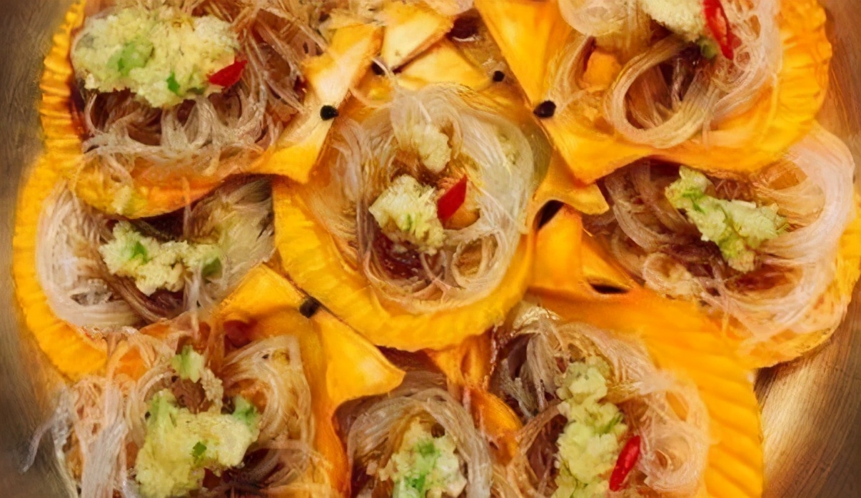 材料: 扇贝6只、粉丝一把、大蒜10瓣、油20克、鸡精3克、蒸鱼豉汁5克生抽5克、小葱少许