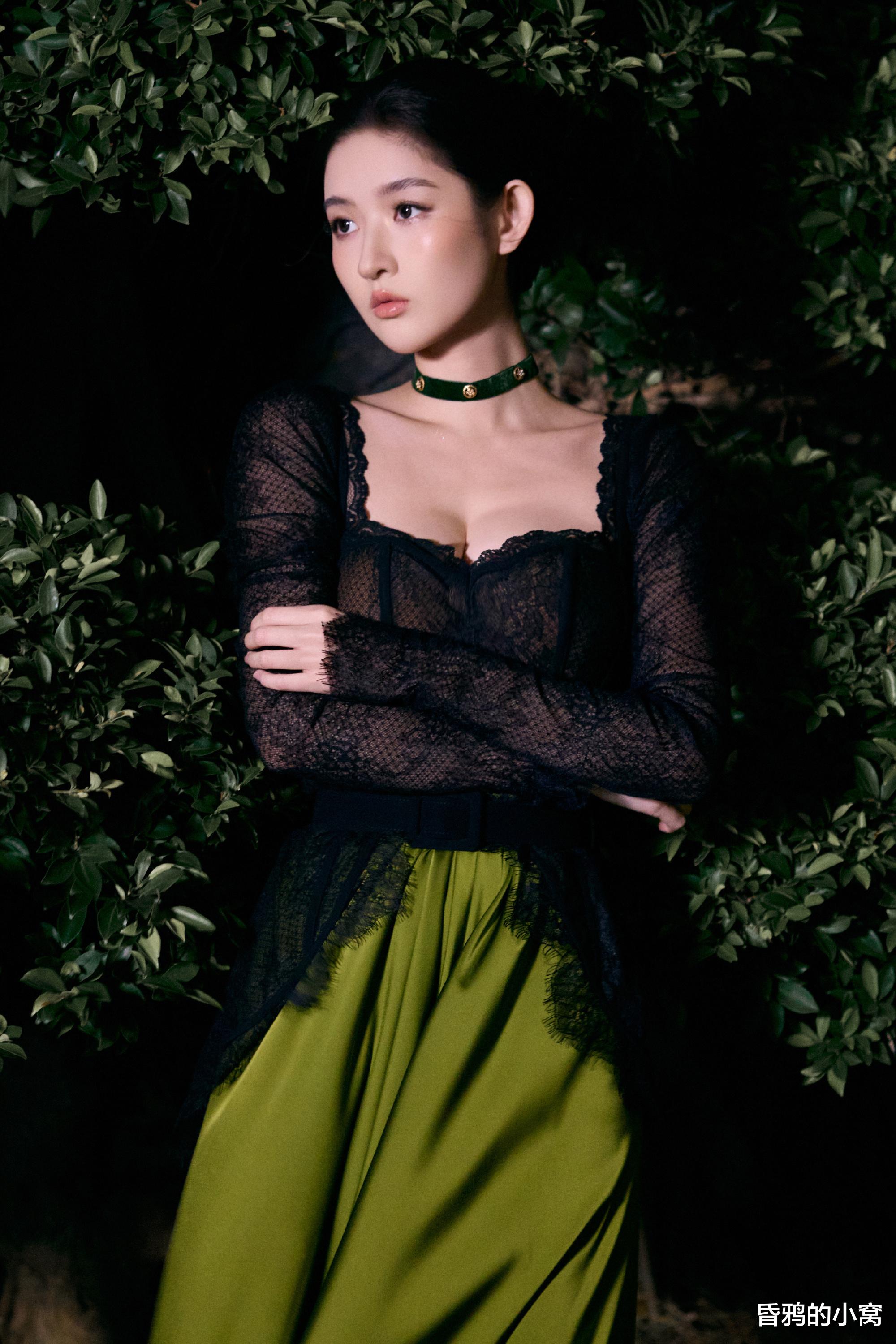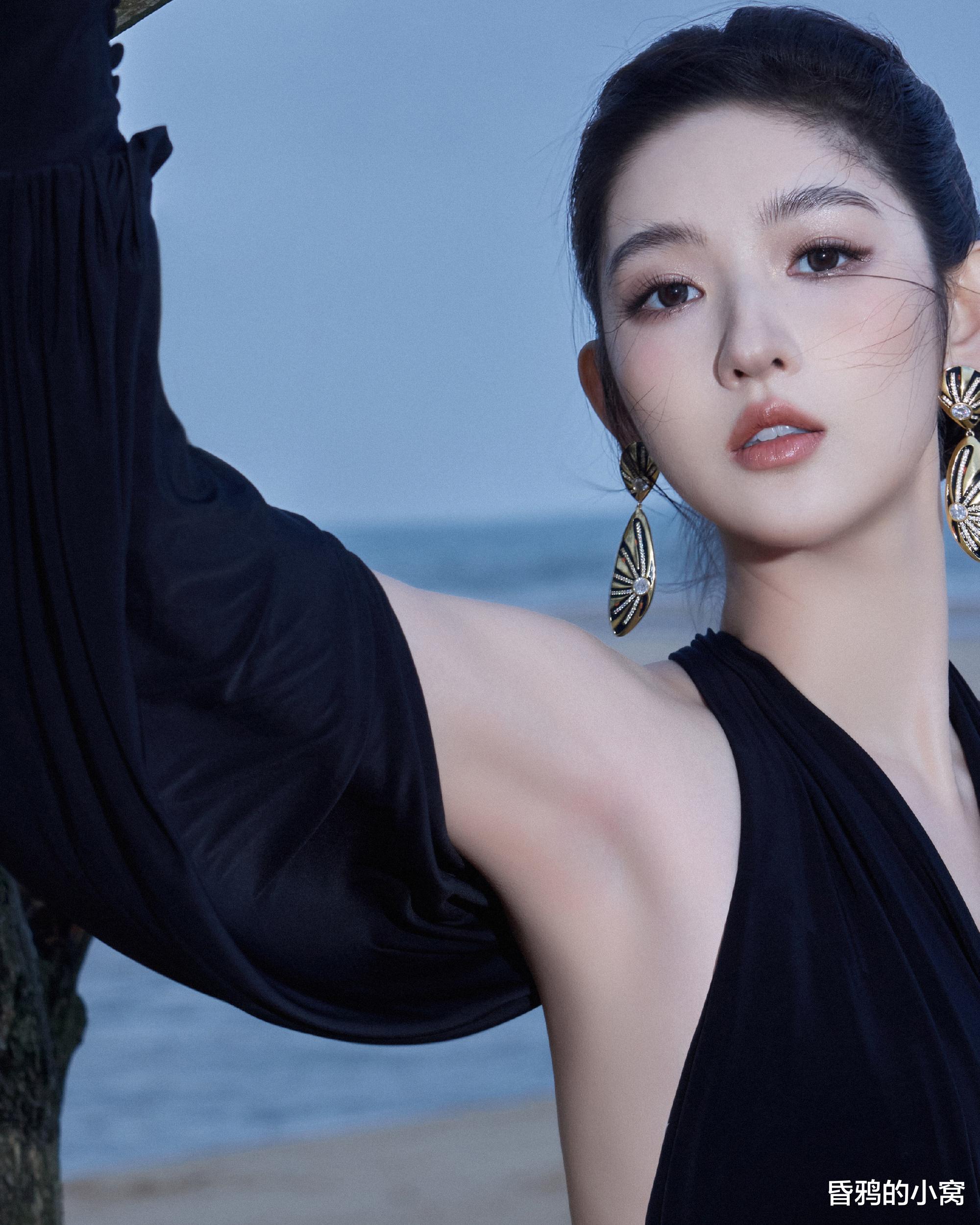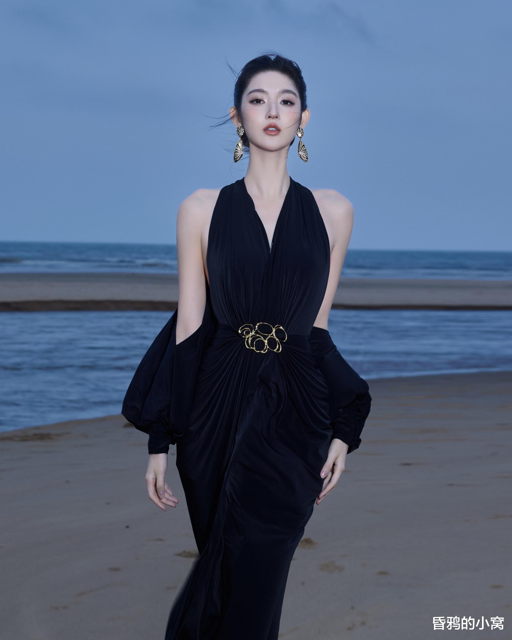 王玉雯身着黑色束腰长裙,搭配贝壳耳饰,被网友形容为“静谧中的磅礴力量”。内场则切换黑绿礼服和黑纱短裤,冷艳中又掺着点小野猫式的娇俏,展现反差魅力。172cm身高与芭蕾舞者出身的仪态优势,将“黑天鹅”意象具象化。
