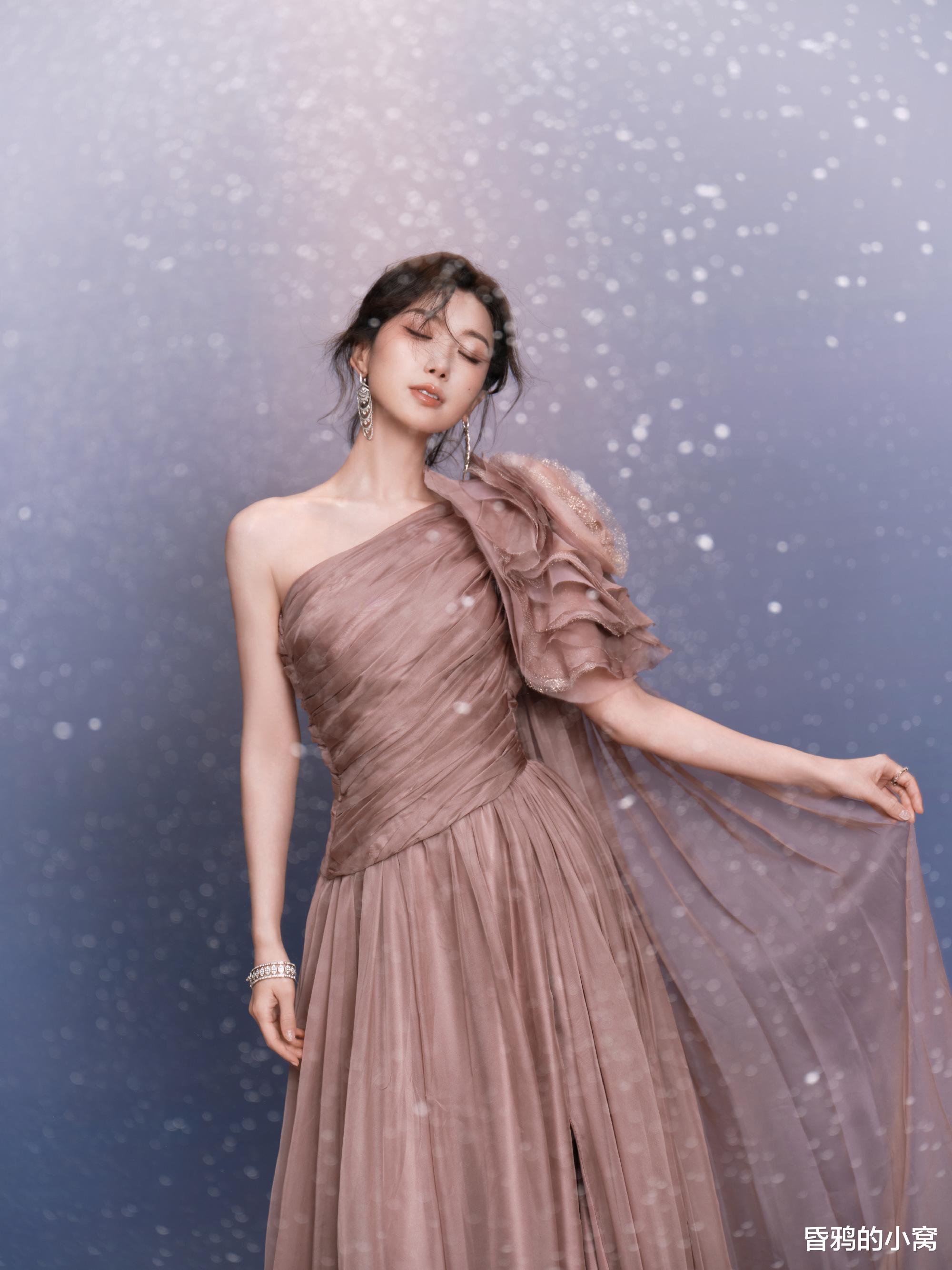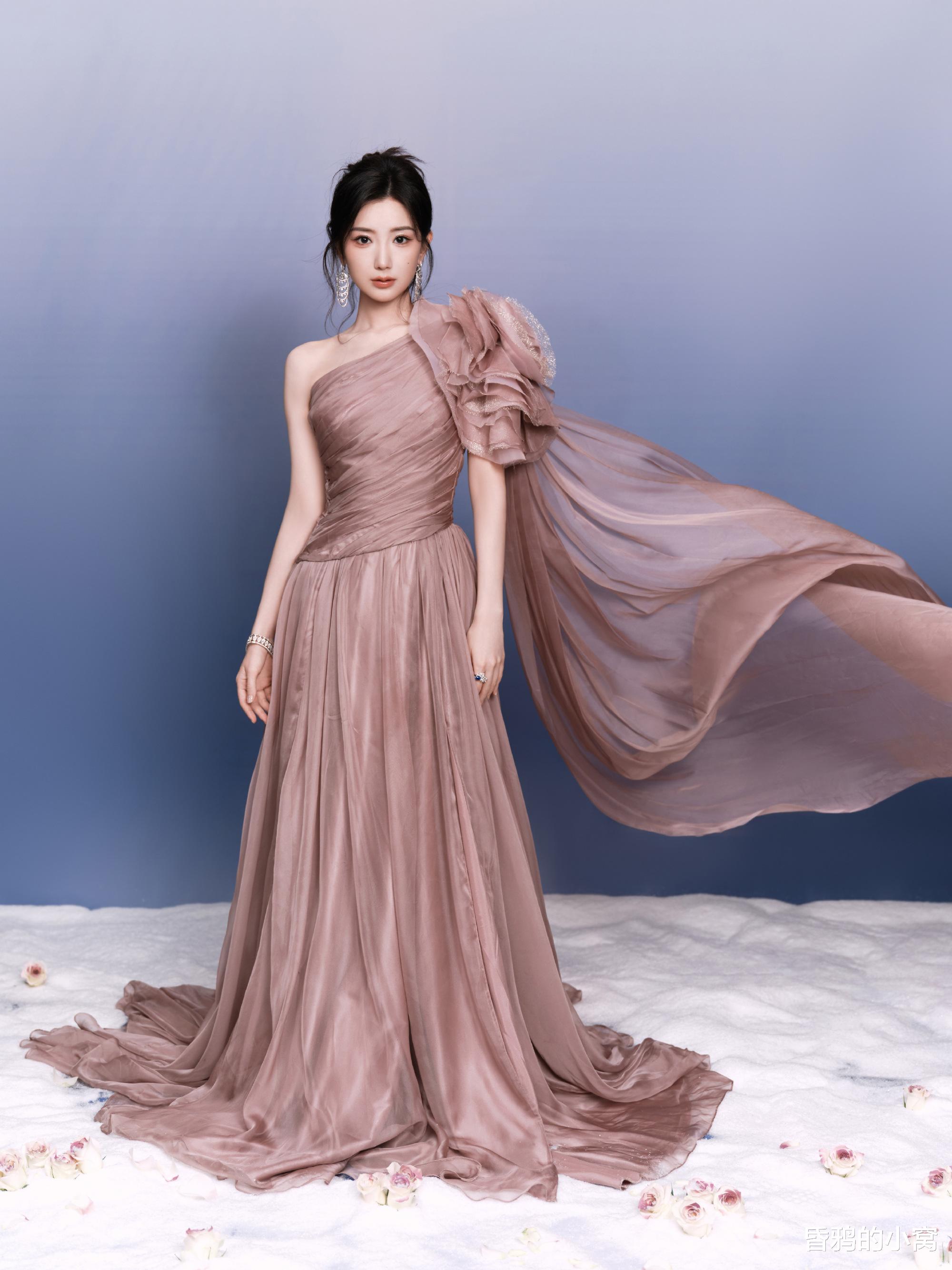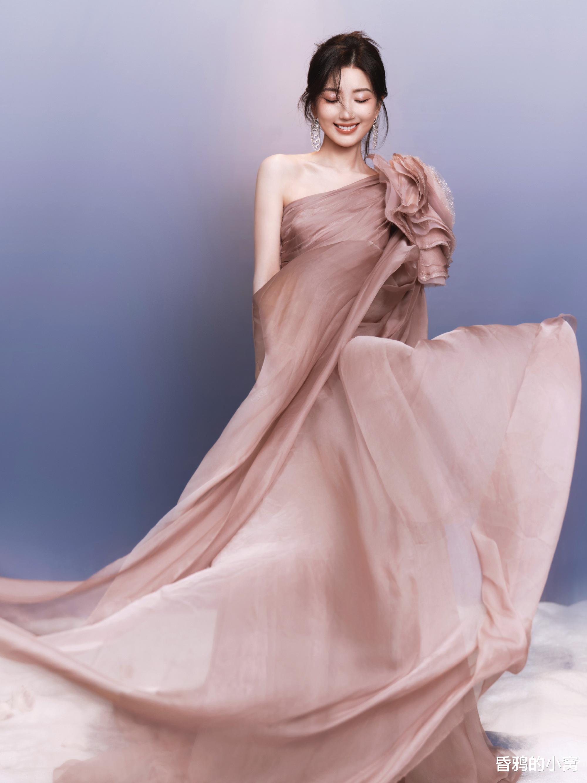 毛晓彤身穿藕粉色斜肩纱裙,妆容清新淡雅,笑容灵动自然,被网友盛赞“暗夜中的金色玫瑰”“人比烟花璀璨”。
