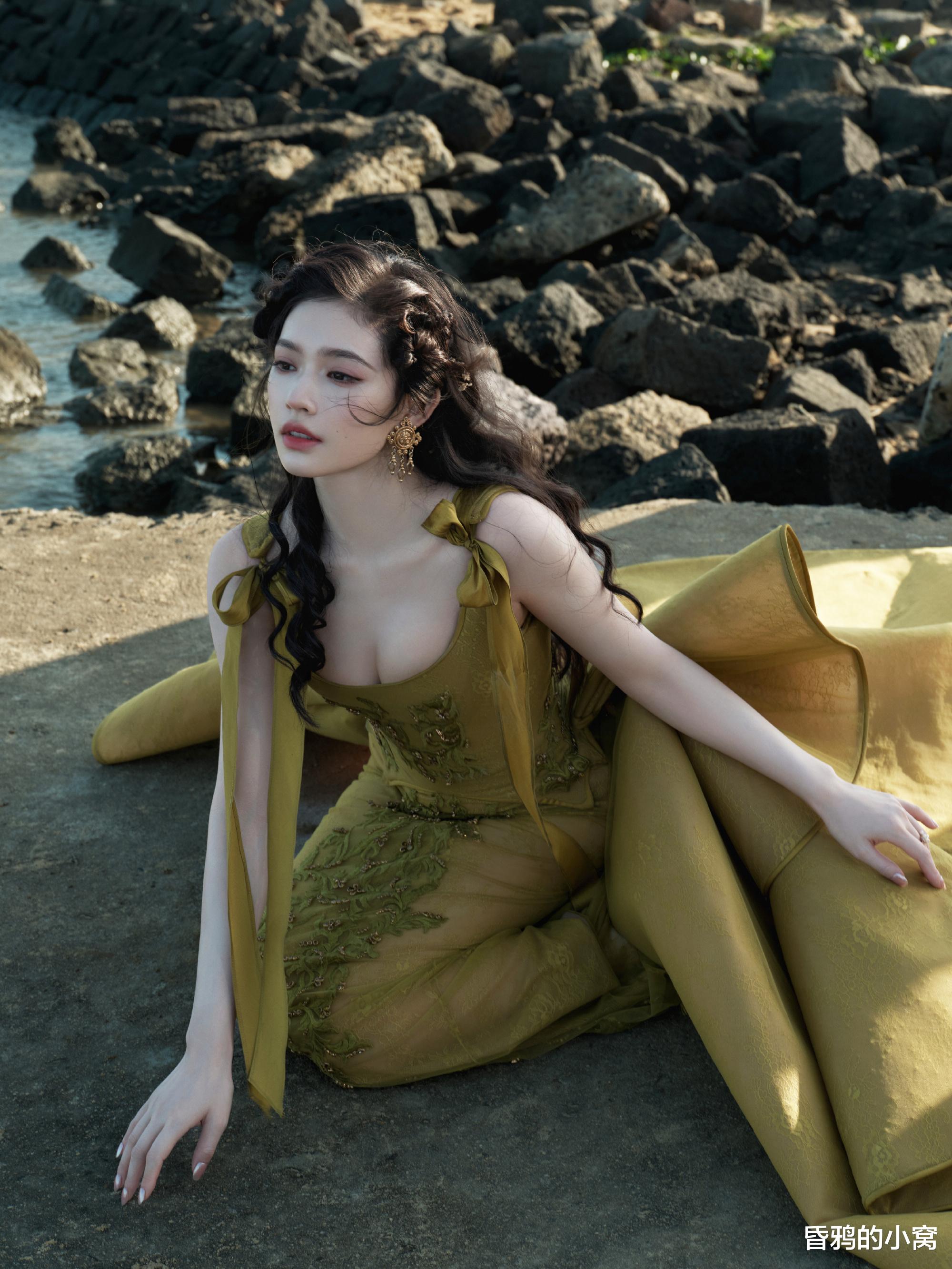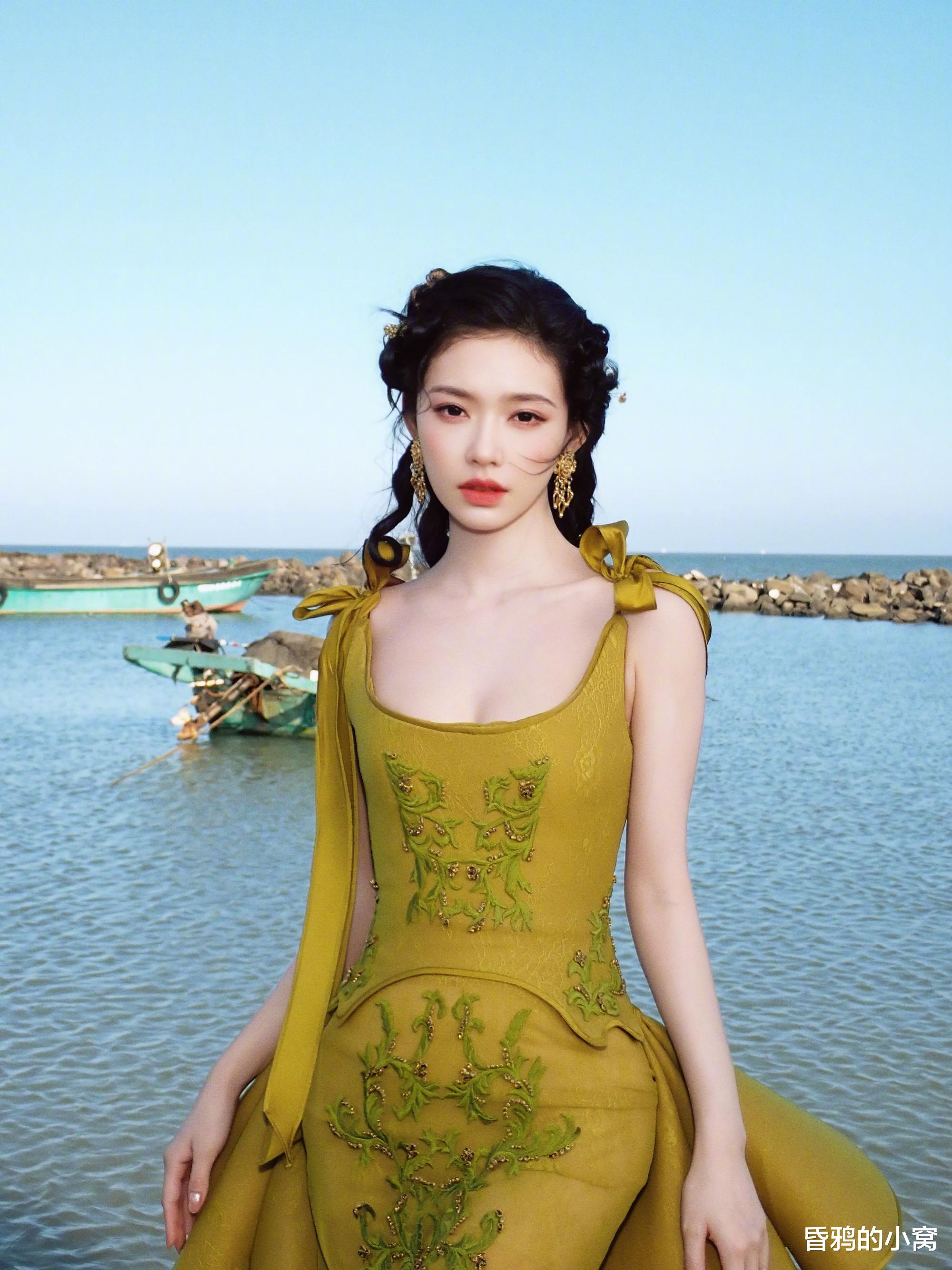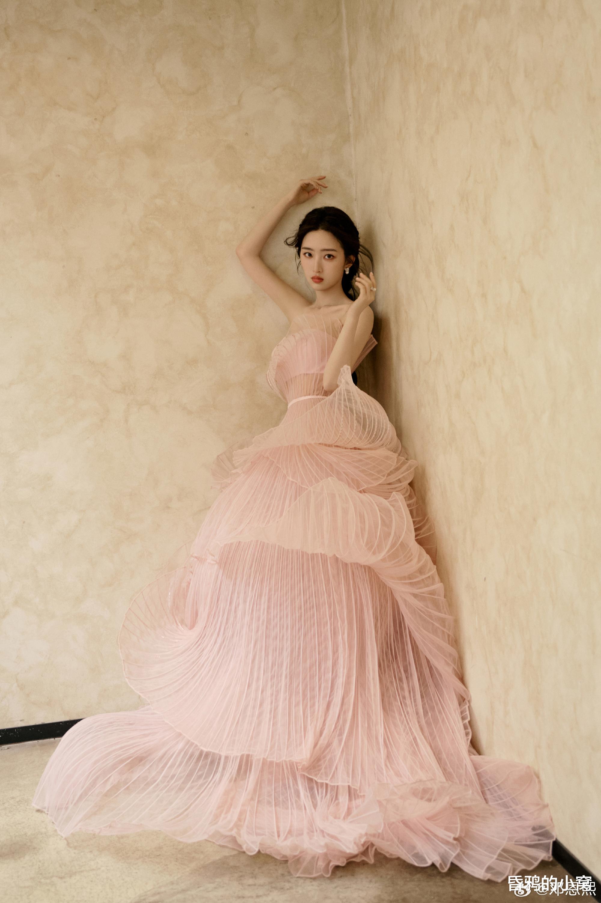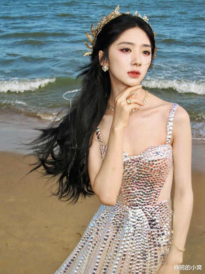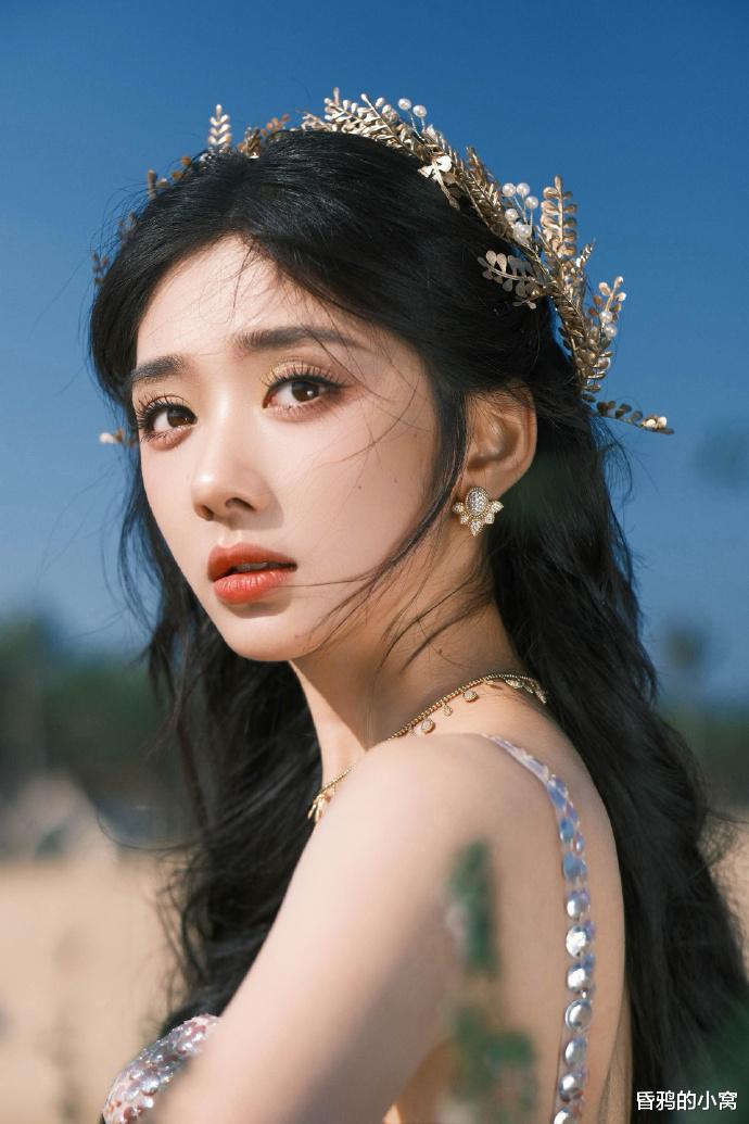 十二、王影璐:希腊神女王影璐以“希腊神女”主题造型引爆全网,外场拍摄的渐变贝母长裙折射出鱼鳞状金属光泽,被形容为“粉色盔甲”,搭配金色月桂花冠,融合柔美与力量感,展现出与众不同的时尚态度。