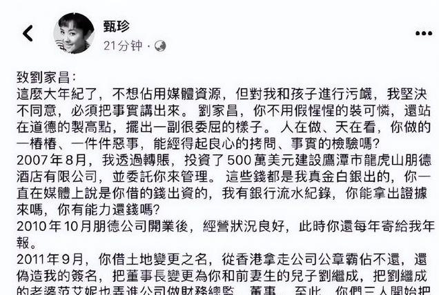 刘家昌多次在社交平台上公开指责甄珍,言语之间充满了怨恨和不满。