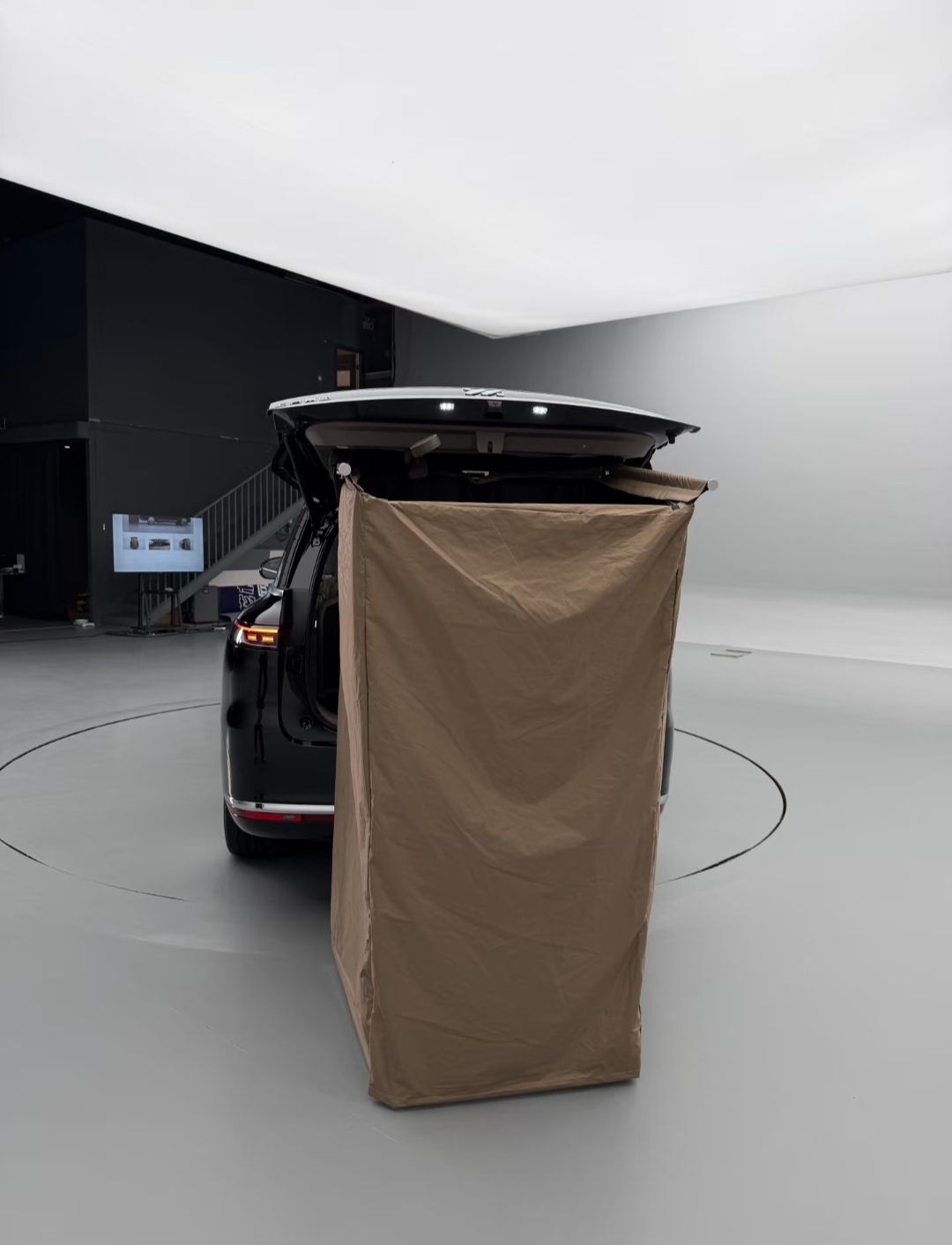 后备箱集成12L可加热水箱+花洒,支持露营淋浴。6.6kW外放电。