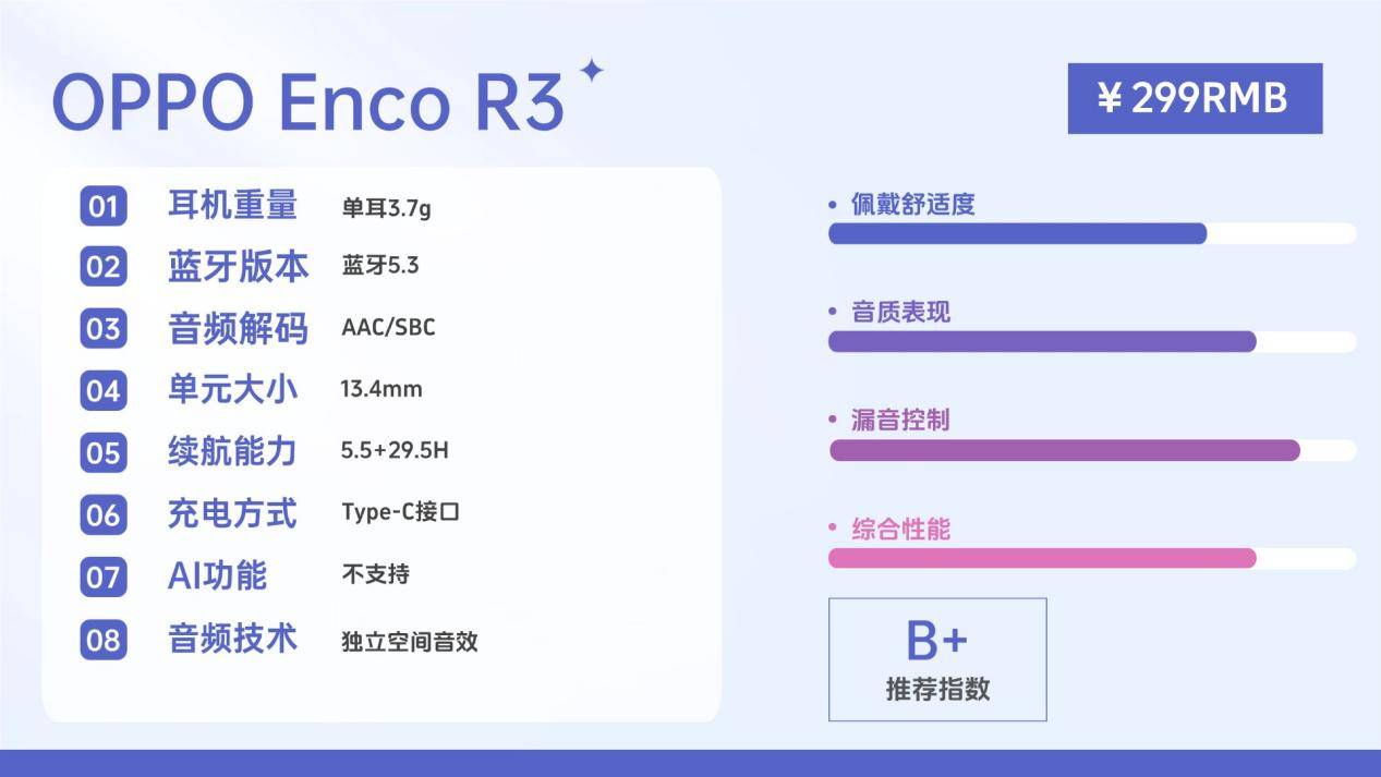 OPPO Enco R3单只耳机重量仅约4克,佩戴时几乎无负担感,即便长时间佩戴,也不会对耳部造成明显压迫或不适。其充电盒设计小巧轻便,便于随身携带,放进口袋毫无压力,非常适合日常通勤、出差或外出场景使用。