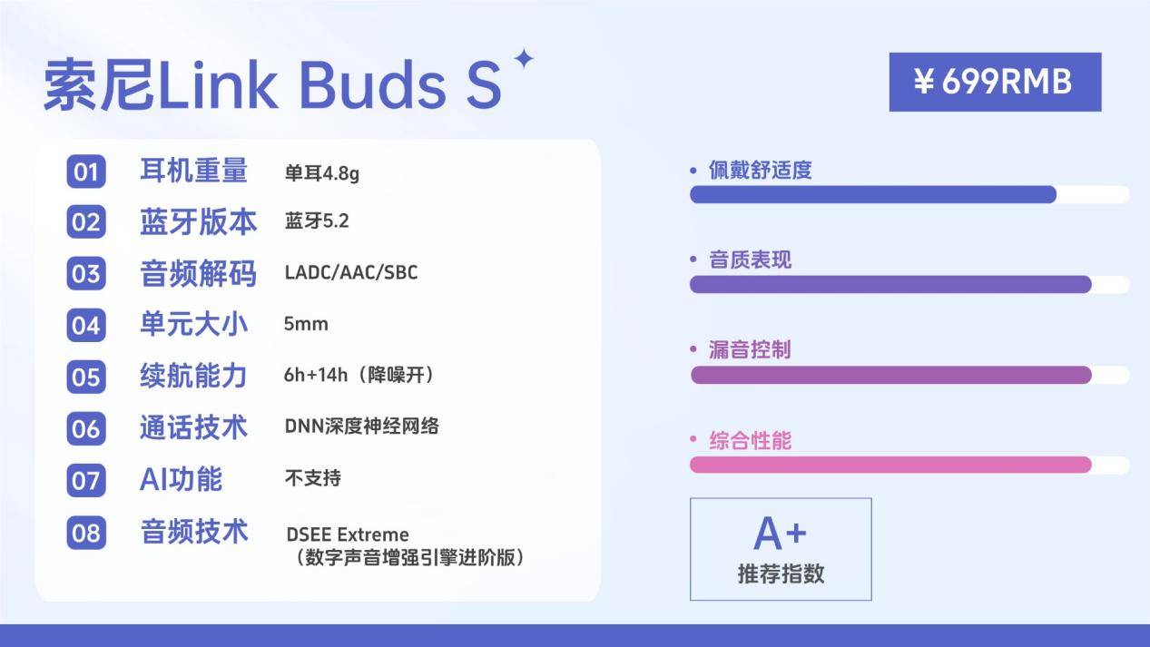 音质与传输层面,Link Buds S支持索尼自研LDAC蓝牙协议,最高传输速率可达约990kbps,数据量约为AAC或SBC的三倍,能更好地留存音频细节。耳机内置全新5mm动圈单元与高柔性振膜,低频深沉有力,声音饱满且无浑浊感;搭配索尼V1集成处理器,降噪效果出众,可有效阻隔环境噪音,带来沉浸式听音体验。