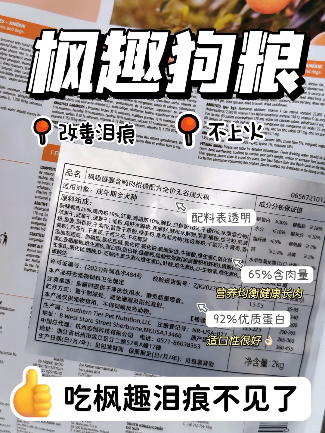 🌸前一阵子正好入手到了一款宝藏狗粮--枫趣狗粮,一定要给大家分享一下,我家毛孩子吃它最明显的改变就是泪痕消失了,这真是意外之喜,不愧是鸭肉配方的狗粮,搭配上维生素含量丰富水果,配方还低敏,肉源是单一的,我家狗子的泪痕终于被搞定了。