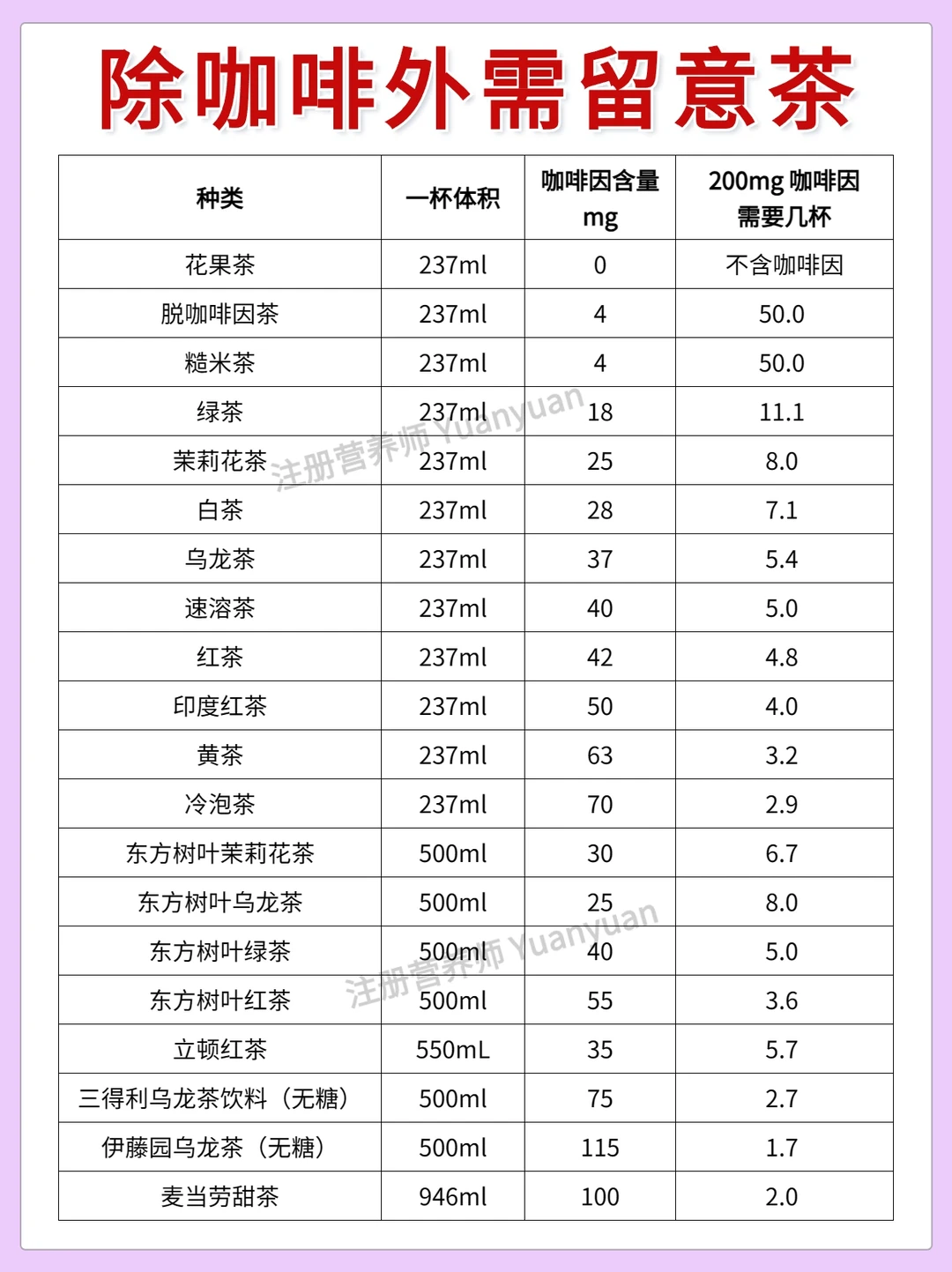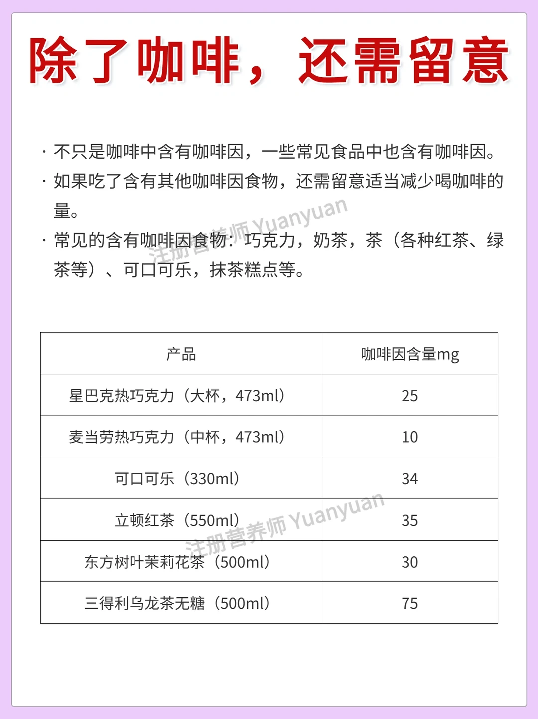⚠️除了咖啡之外,茶,奶茶,巧克力也含咖啡因,所以如果吃了这些,咖啡要减量。