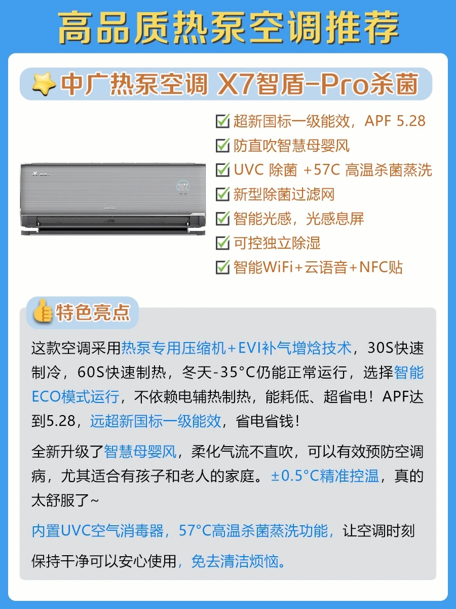👍🏻推荐一款高品质热泵空调给小伙伴们,中广热泵空调 X7-智盾PRO系列。