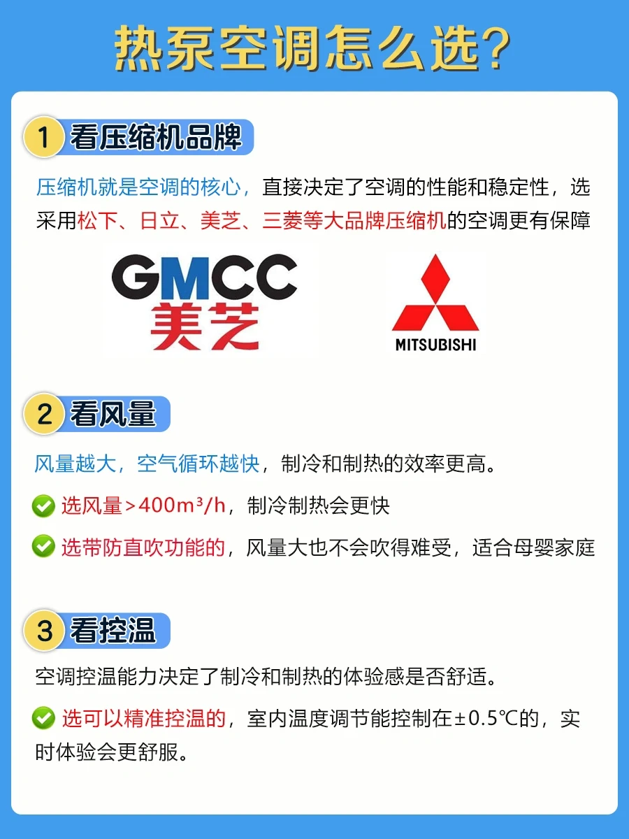 📝下面整理了热泵空调的选购注意事项,快来抄作业吧~