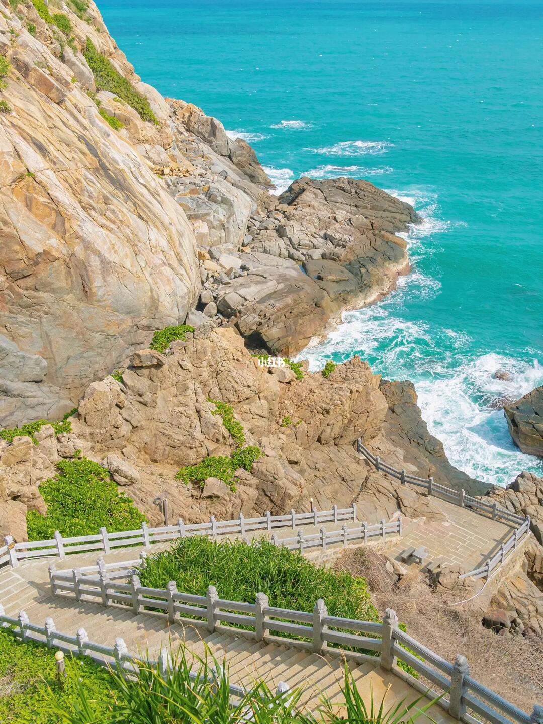 ❺约风亭:观光车最后一站,沿着台阶走下去,在悬崖护栏内俯瞰整个海域,很壮观。住岛上在早餐厅吃完早餐直接走过去