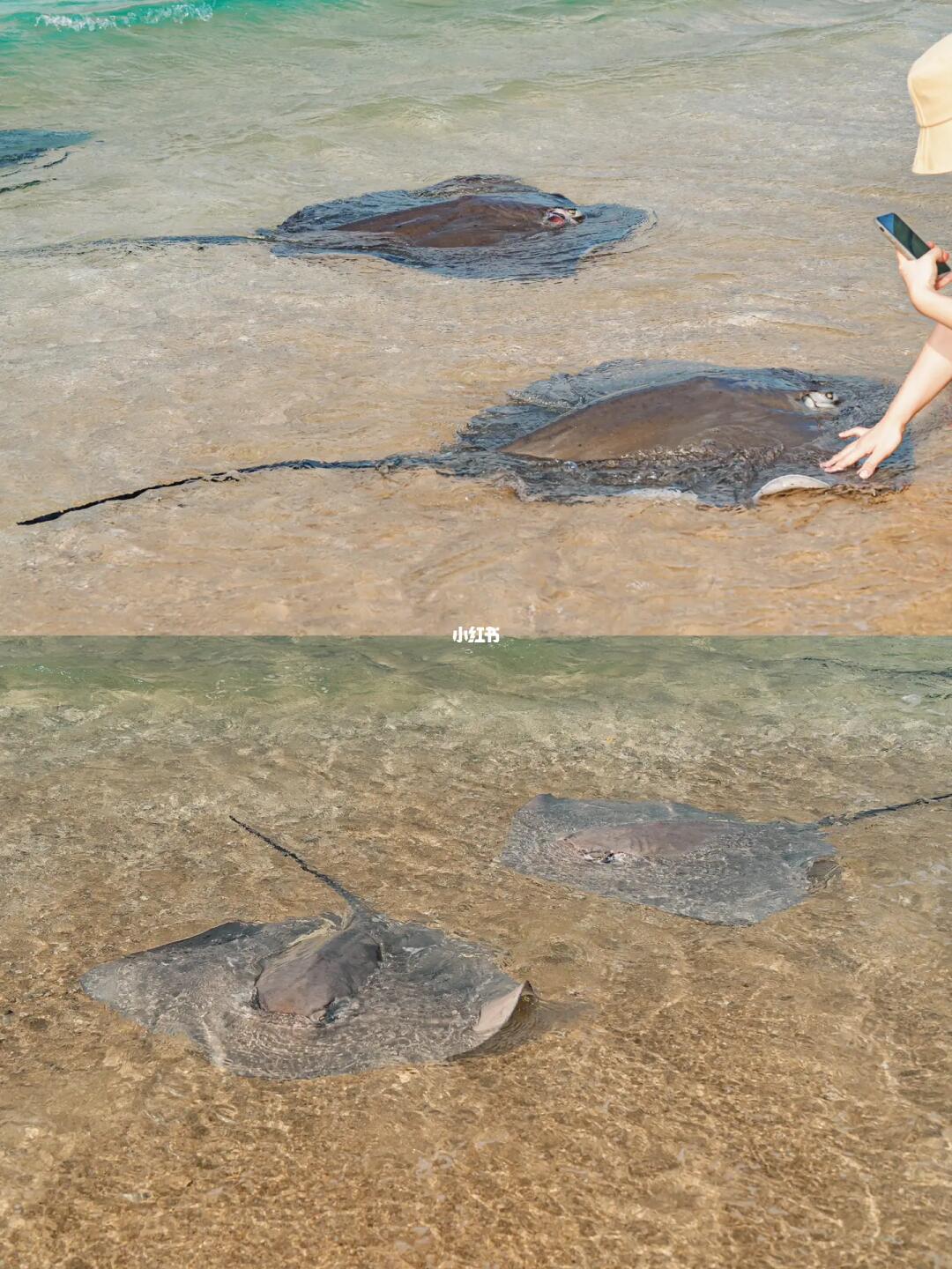❷亲子可以去海洋剧场看表演🦭还可以在上岛右转的第一个沙滩上和魔鬼鱼互动,互动时间9:30、13:00、15:00、18:00