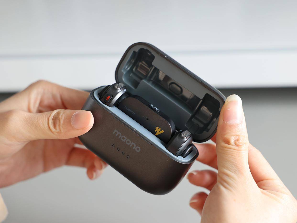 闪克Wave T5单麦重量9克,仅支持领夹佩戴。实际佩戴时夹持力度适中,轻薄衣物上稳固性良好。静态录制两小时后无明显坠感,日常使用舒适。动态录制时,如走动或侧身动作,麦克风可能轻微滑动,需偶尔调整位置。整体体验轻便易携,但在连续拍摄场景中稳固性略逊于磁吸结构设计。
