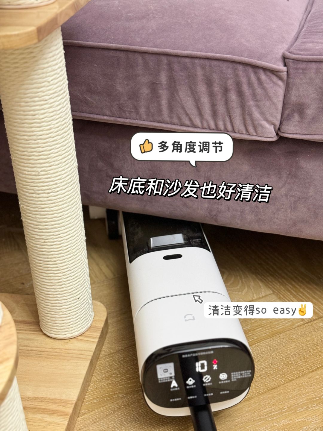 🎉用起来也超方便,以前对于沙发底,床底这些卫生死角,清理一次快把腰累断,但是这个洗地机可以180℃平躺到地上,双侧贴边,轻轻松松就能伸进卫生死角里面,毛毛一遍就能解决,还有智能脏污感应,比我手动清理的干净多了,还有50℃热风烘干滚刷,不怕清理完会受潮。