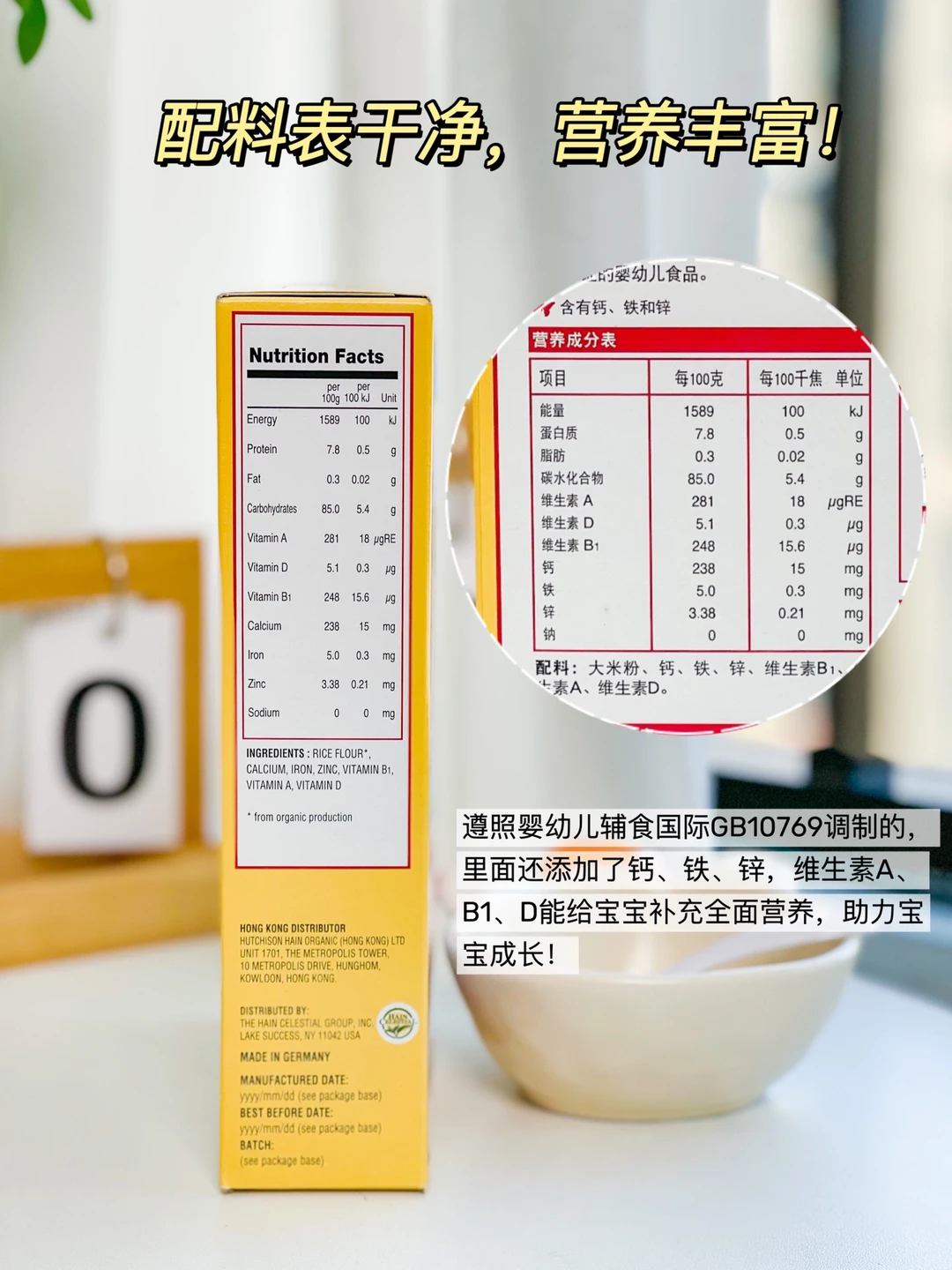 它的二价铁容易被人体吸收,含量高达5mg/100g,属于高铁米粉范围内。配方遵照婴幼儿辅食国标GB10769调制,营养丰富,包含宝宝所需的钙、铁、锌、维生素A、B1、D,帮助💪宝宝成长。