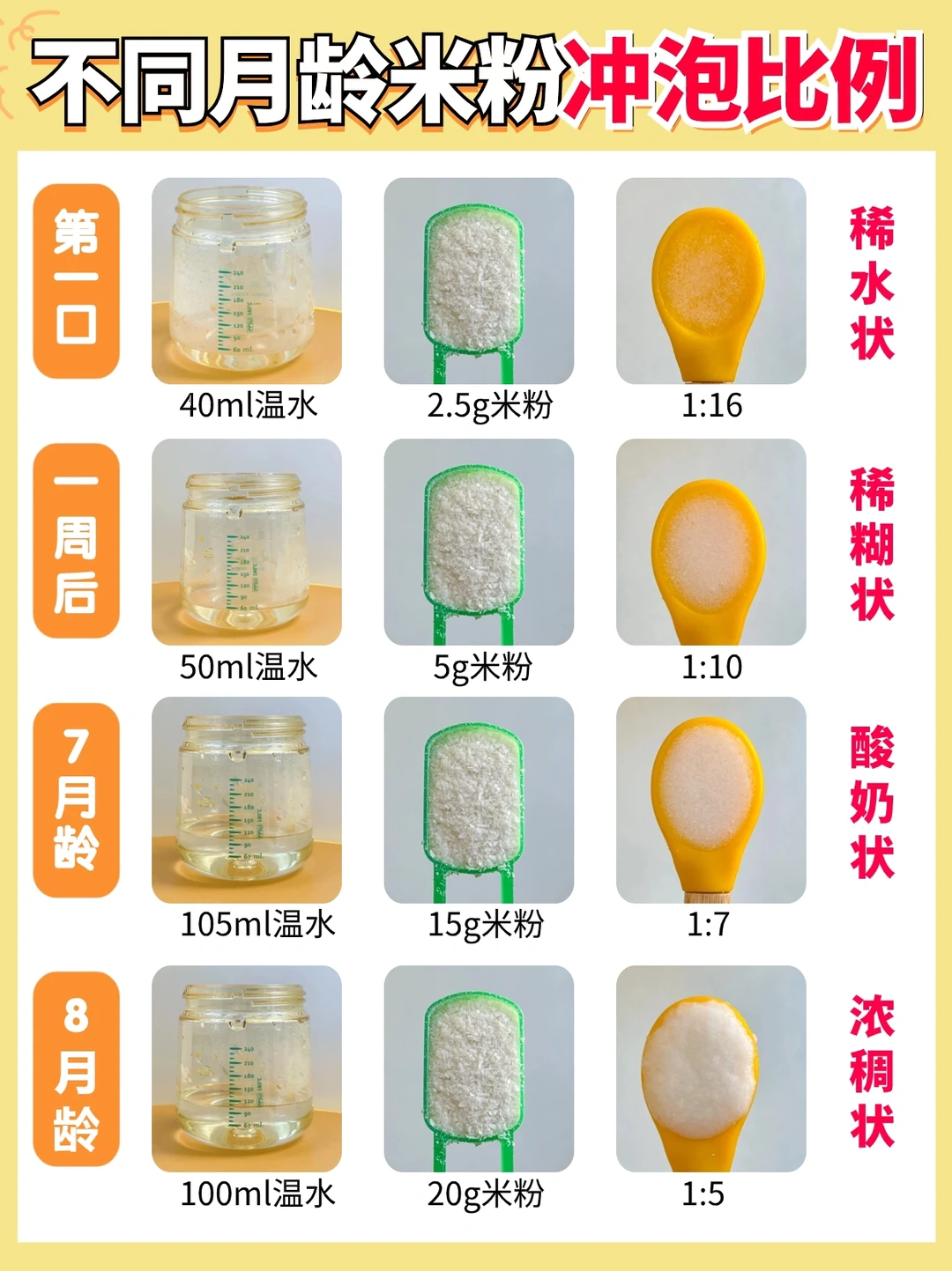 宝宝6-7个月是重要的饮食培养阶段,米粉辅食应该如何添加?(参考图1图2)