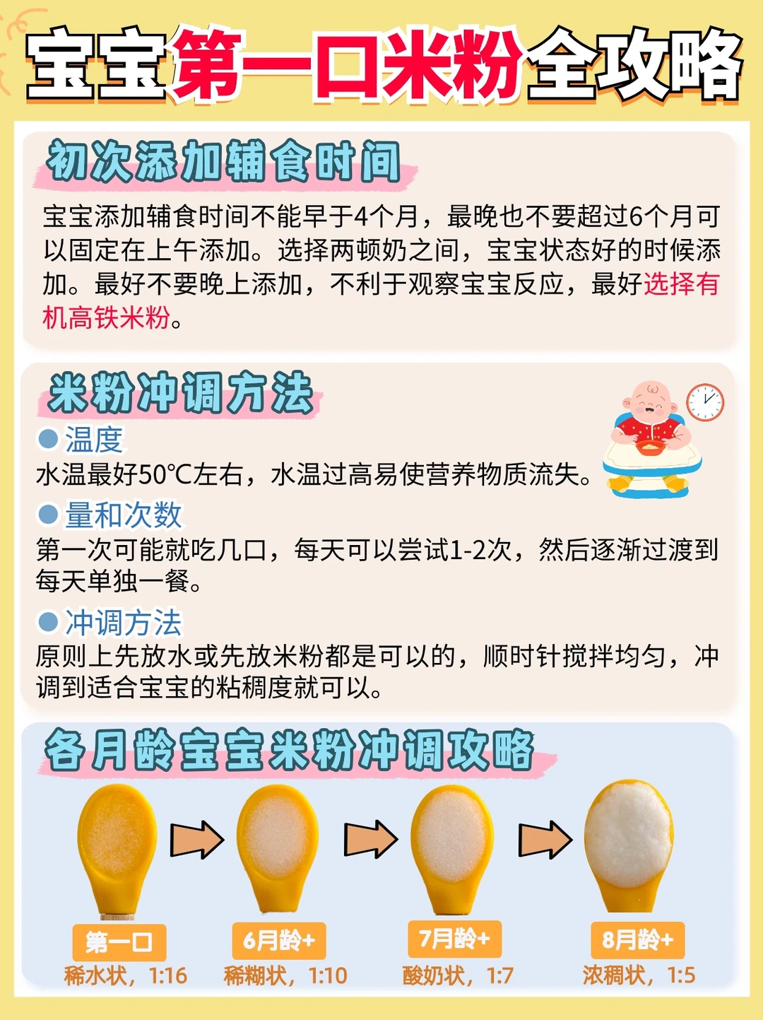 宝宝6个月左右要开始添加辅食了,可能有不少新手家长都会发愁☹。虽说第1⃣️口辅食吃的都是高铁米粉,但各阶段的宝宝应该如何正确添加米粉呢? 今天就来详细聊一聊!