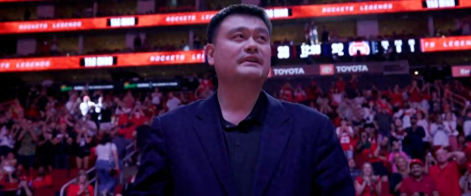 由于今天是火箭队新赛季主场揭幕战,因此火箭队举办了盛大的名宿之夜活动。除了邀请姚明之外,包括奥拉朱旺等队史名宿都来到了现场。火箭队官方还特意播放致敬视频,姚明的出场得到了现场球迷的热烈欢呼。在观赛期间,姚明一直与奥拉朱旺坐在一起!