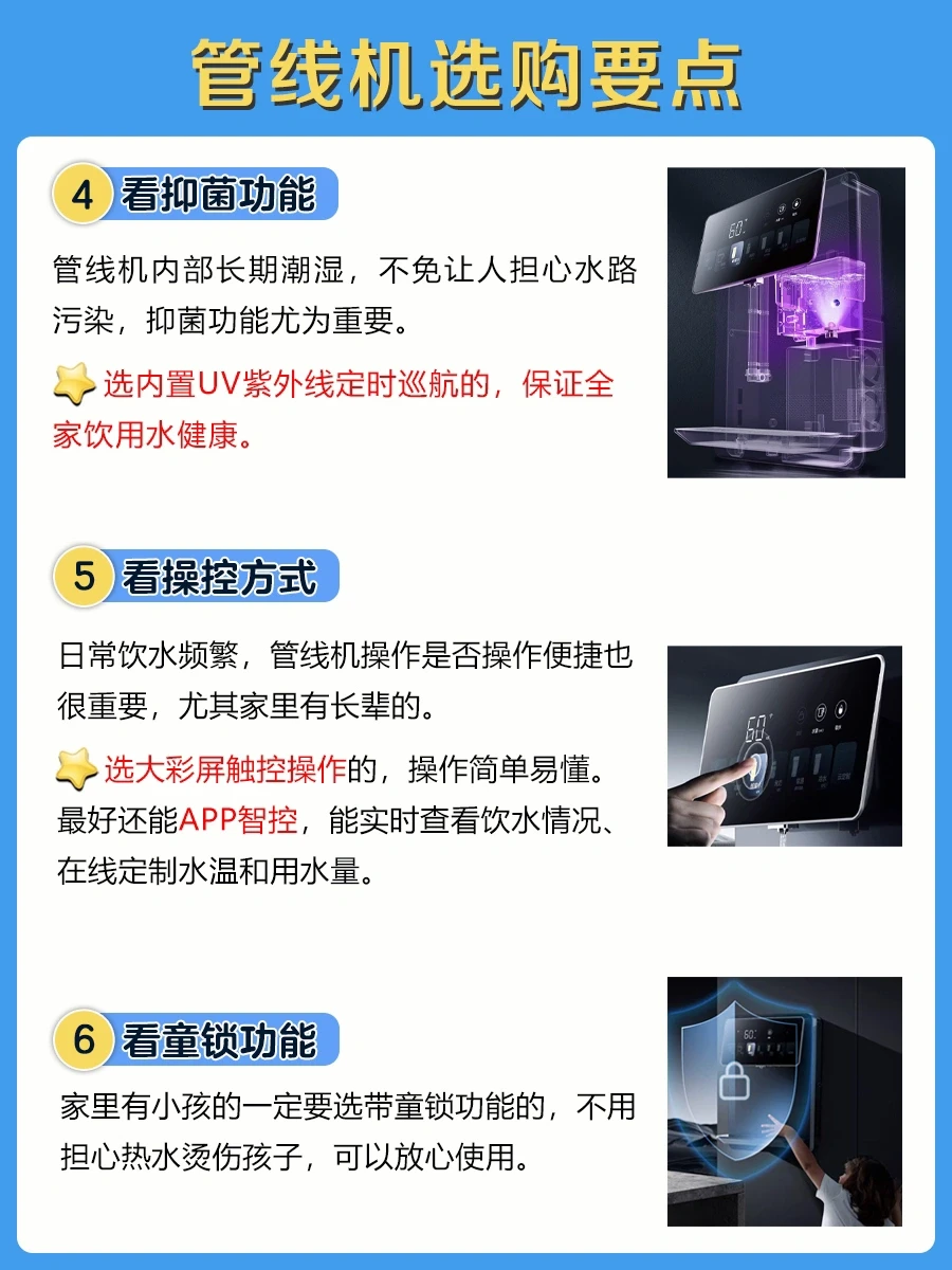 ✅选内置UV紫外线定时巡航的,保证全家饮用水健康。