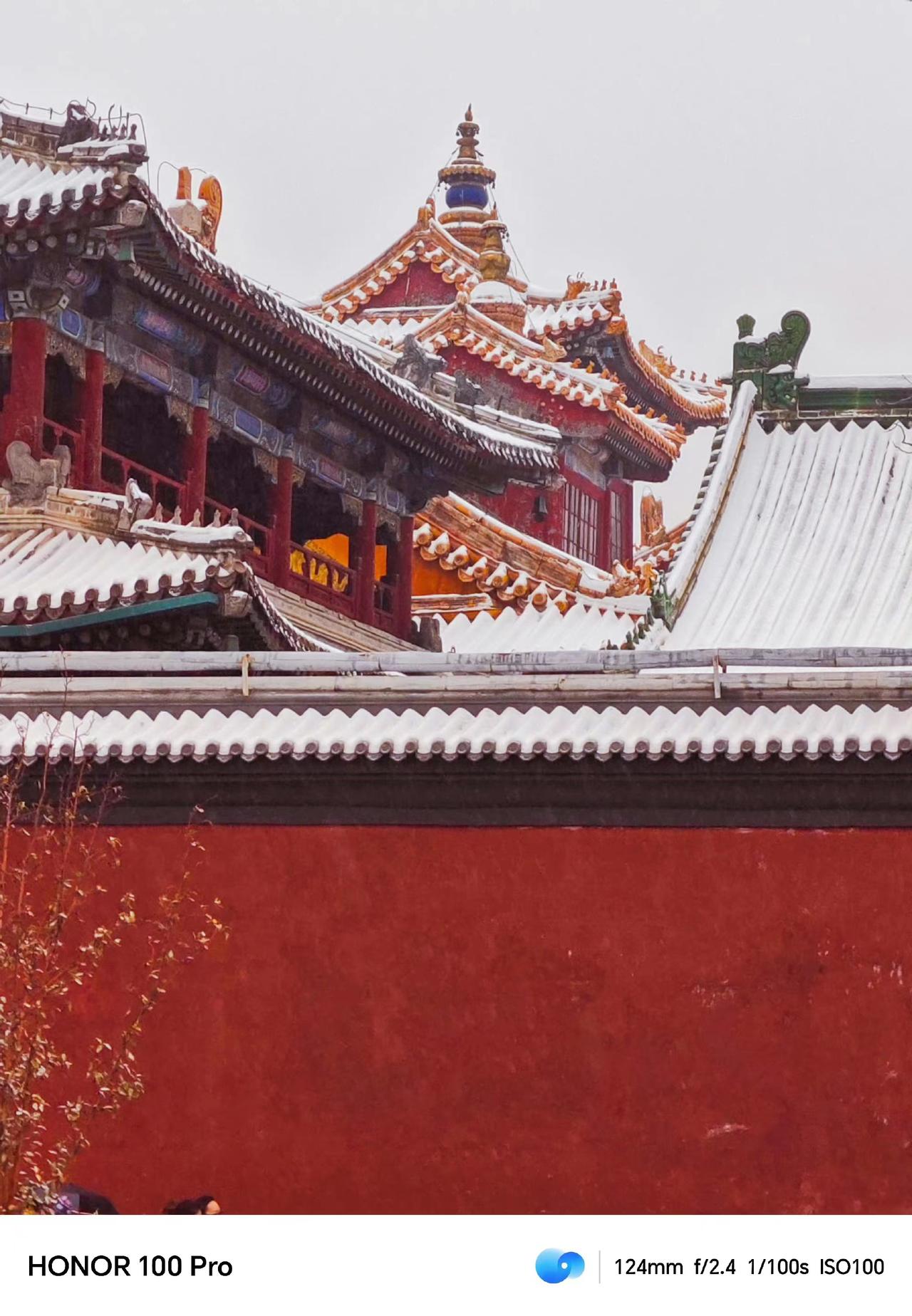 欣赏一下荣耀100 Pro镜头下的雪景,昔日的喧闹仿佛进入了平静和从容,从中可以感受岁月的流转和历史的沉淀。我去过北京两次,这是一座非常有有文化底蕴的城市,如果有机会,带上自己的家人去看看,去感受。