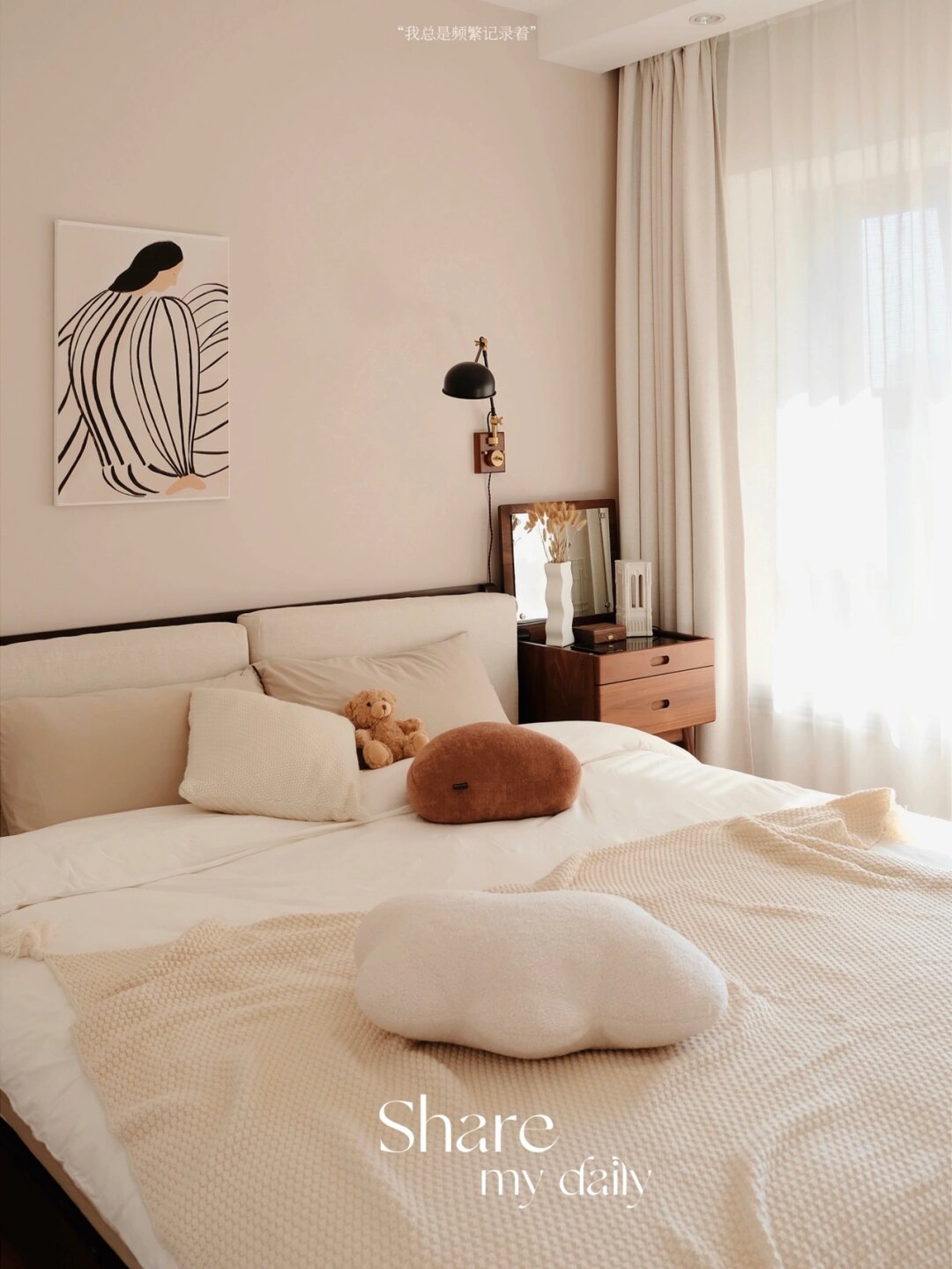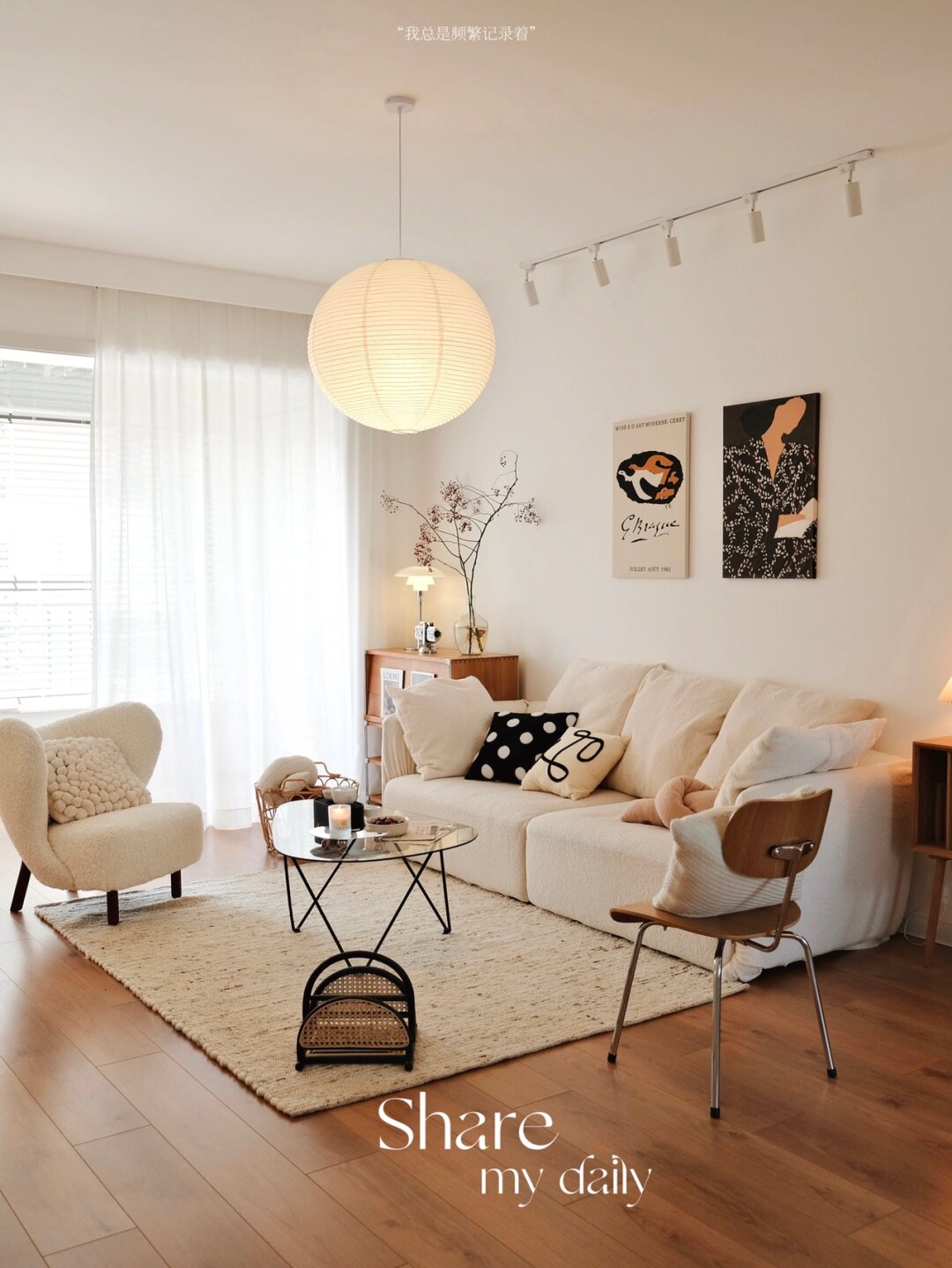 10w装修的小家让我平凡的生活发着光[微风] 来啦!打开窗户吹进来的都是 的味道…… 现在最爱的就是宅家,因为我家太好看了[害羞] 今天来分享我的北欧风小家! 我家建筑面积133平,使用面积110左右。硬装一共花了10w!在装修上我的观念是“轻装修重装饰”。我是一个喜欢经常变化的人,总是会把家里的各种软装换来换去~所以家里没有做复杂的吊顶、石膏线、地板瓷砖没有复杂的人字拼、墙上没有缤纷的颜色,可以让我通过更换软装变换风格~最近迷上了北欧风,感觉每天呆在自己家里都是享受 [微风] 硬装分享 水电工费[微风] 材料8600 瓦工工费[微风] 瓷砖11000(瓷砖是建材市场淘的) 木门[微风] 壁柜门12000 玻璃门10000 木工工费[微风] 吊顶石膏板9000(只有新风管道和餐厅做了吊顶,客厅和主卧做了窗帘盒) 美缝1000 油工工费[微风] 乳胶漆6000 全屋地板9000 窗台、过门石1000 橱柜[微风] 定制柜25000 全屋开关1500 硬装结束全部加起来94100 北欧风软装分享 客厅系列: 电视柜:宜家贝达 杂志柜:泡沫小敏 地毯:Li Wu 茶几:鑫泰家居 单人沙发:凯撒布兰卡家具 落地灯:西西时代 球球抱枕:北欧小卖部 大球纸灯:宜家 蚂蚁椅:DPstudio 功夫茶具:泊喜小泡蛋 卧室系列: 床:北欧表情 床品:唱妈小铺 床头灯:南灯记 梳妆台:小半 床头画:北见 窗帘:涞里 我的小家真的越看越爱!想装成北欧风的赶紧学起来~