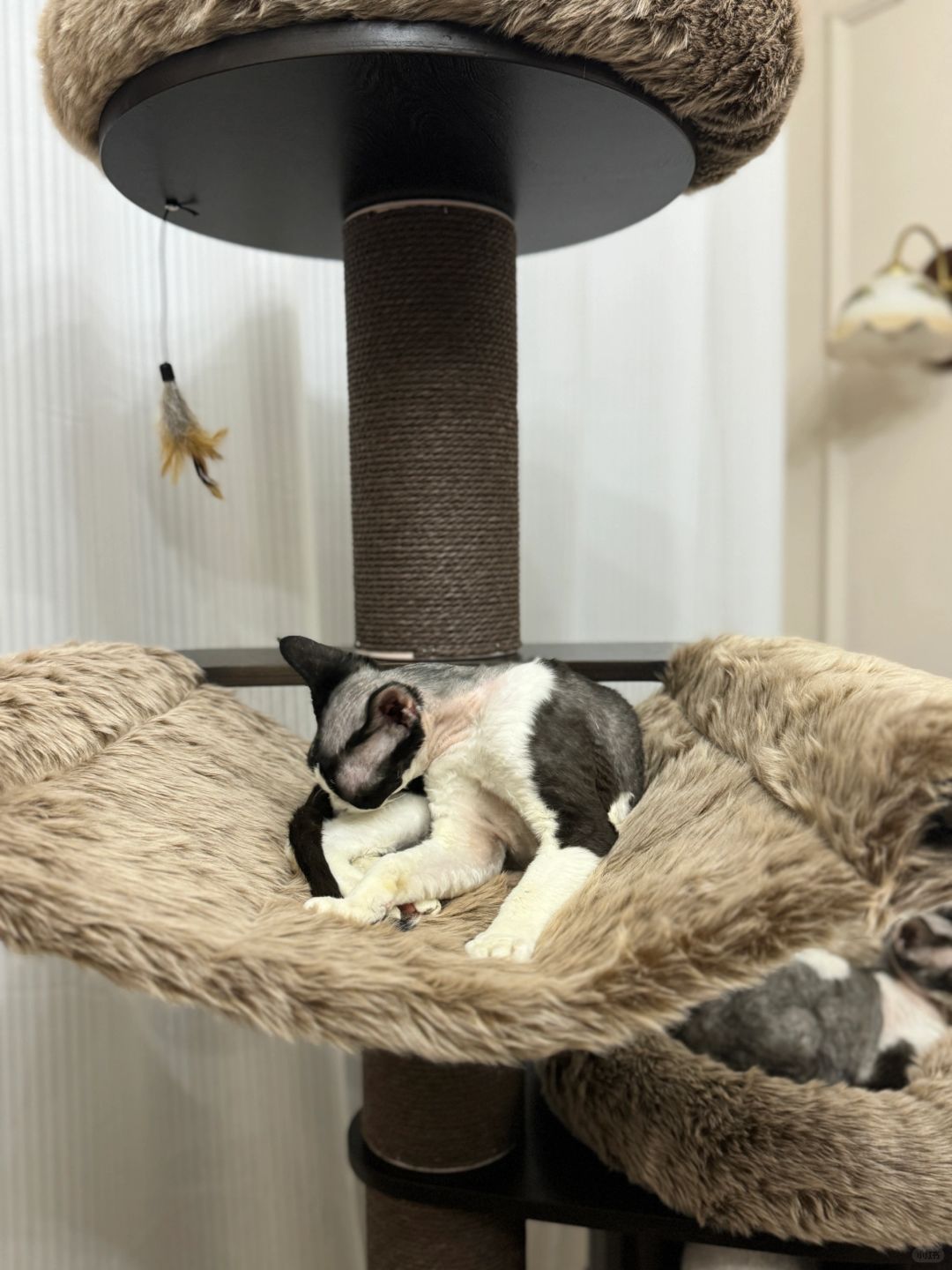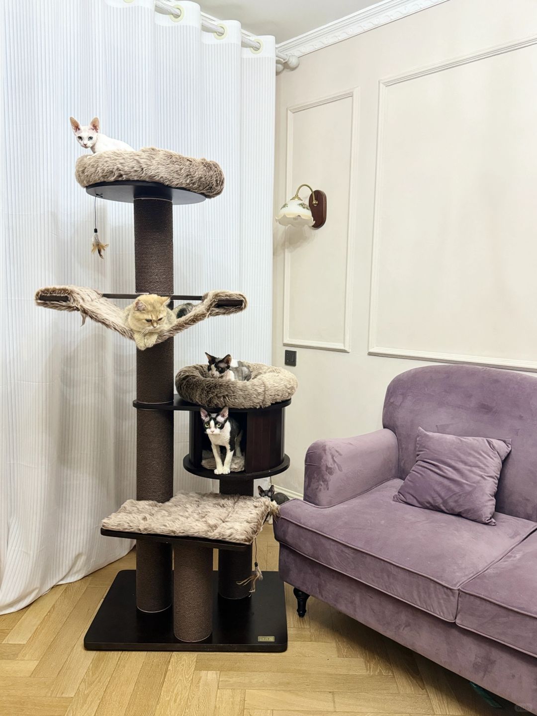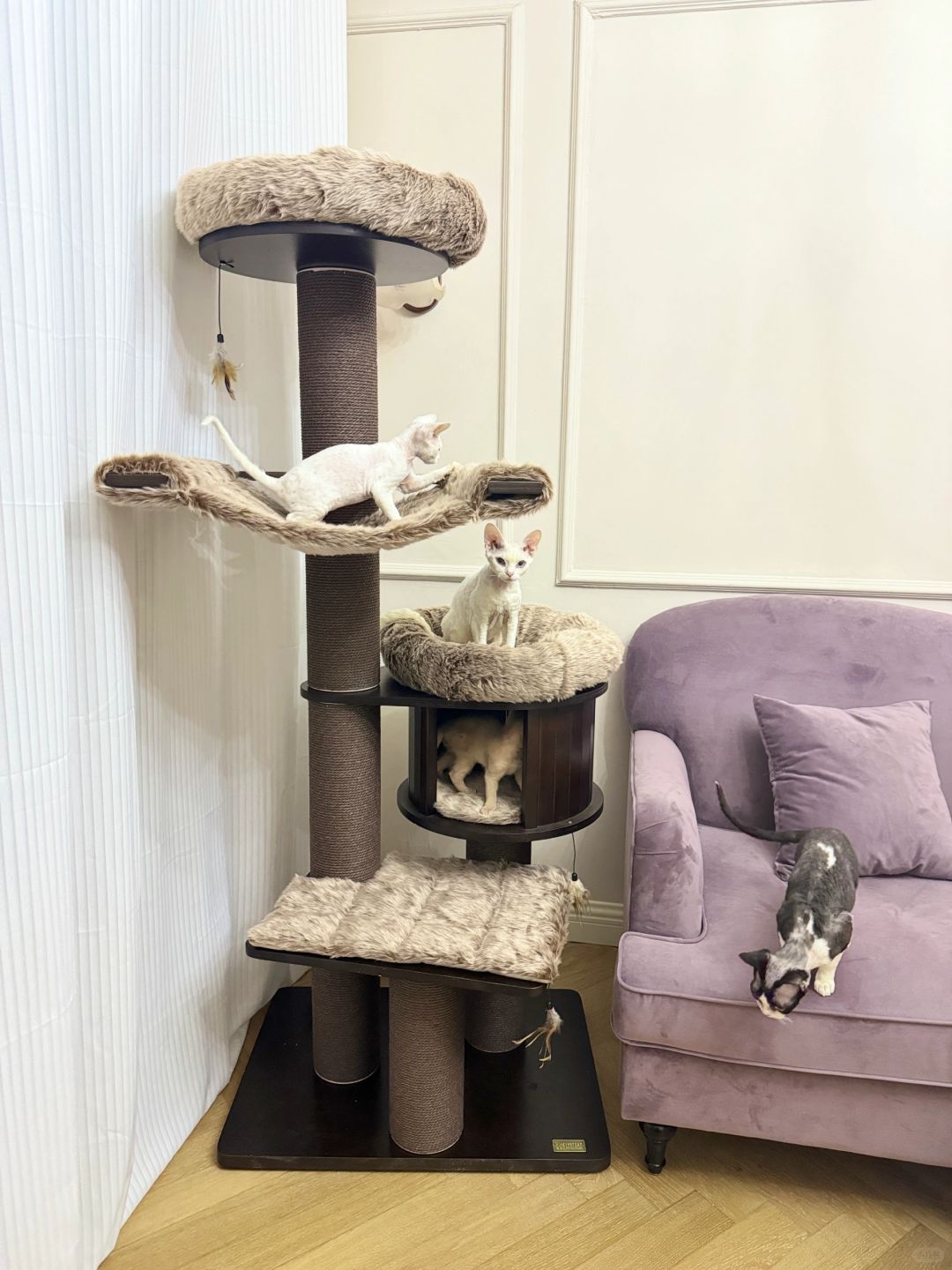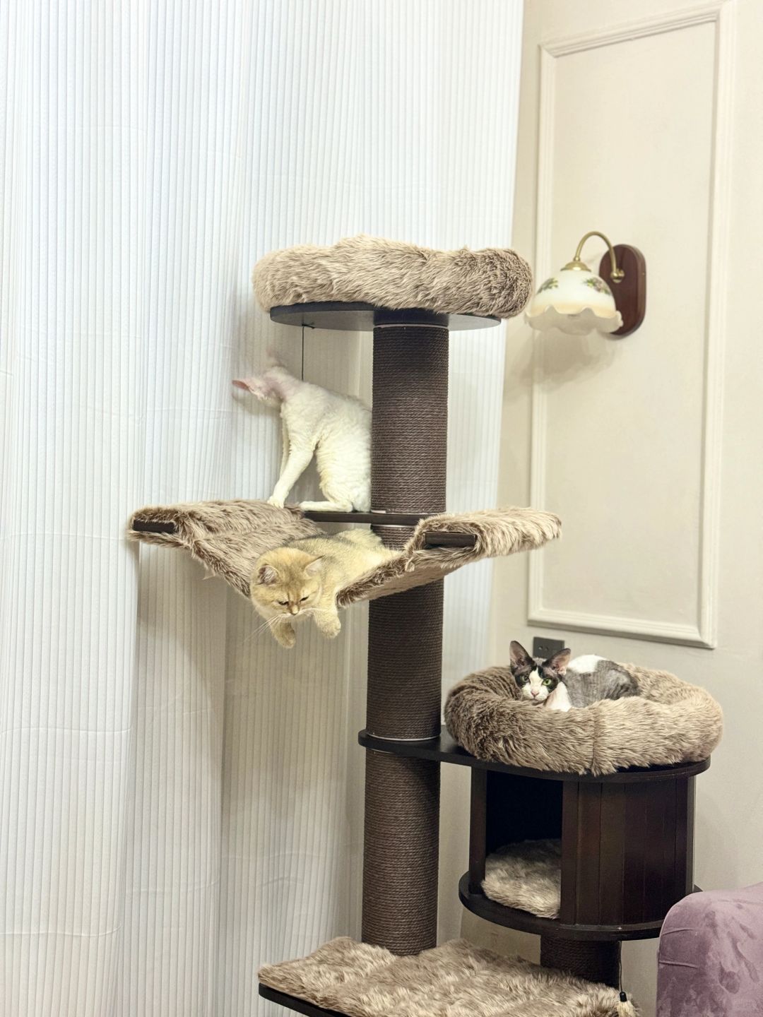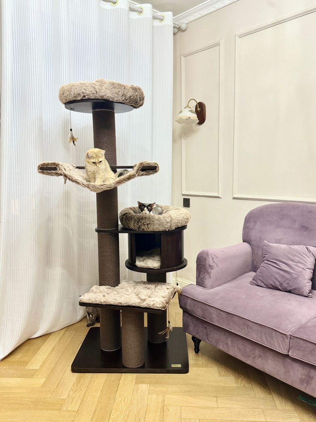 最近大促,看到了它家新款配色超高级的猫爬架,按耐不住还是入手了。到手以后发现没有买错,它不仅好看,放在家里让整个氛围都不一样了✨,而且它猫窝、吊床、平台都是毛绒的,非常适合毛孩子冬天用,我家毛孩子上去了就不爱下来,可以趴好长时间。而且很好打理,带漆湿巾轻擦就干净啦,每天看着他们hin幸福!