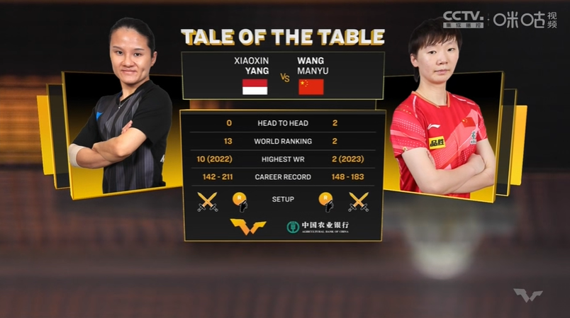 此前王曼昱和杨晓欣一共交手过两次,王曼昱都取得了比赛的胜利。这一次,杨晓欣显然实力有所增强,王曼昱过了第一局,后面应该会好打一些。