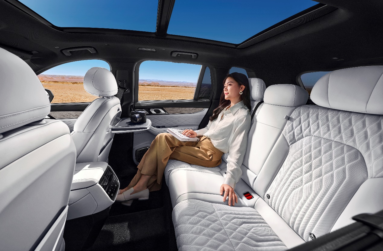 坐进2026款领克09四驱探索版的车内,首先能感受到的是它对“坐得舒服”这件事的重视。它没有盲目追求七座,而是选择了更实用的大五座布局,这让后排每一位乘客都能获得尊崇的体验。其第二排座椅拥有1366mm的同级超宽宽度和540mm的最大坐垫深度,能为腿部提供充分的承托。更值得一提的是,此次改款将以往多见于高端车型的前排座椅通风、加热和8点式背部按摩功能扩展至后排,实现了四座同享。配合新增的多功能中央扶手、小桌板、双层静音隐私玻璃以及14扬声器的Bose定制音响和海洋之谜香氛系统,一个原本属于高端新能源车的私享、舒适后排空间便在燃油车上得以实现。