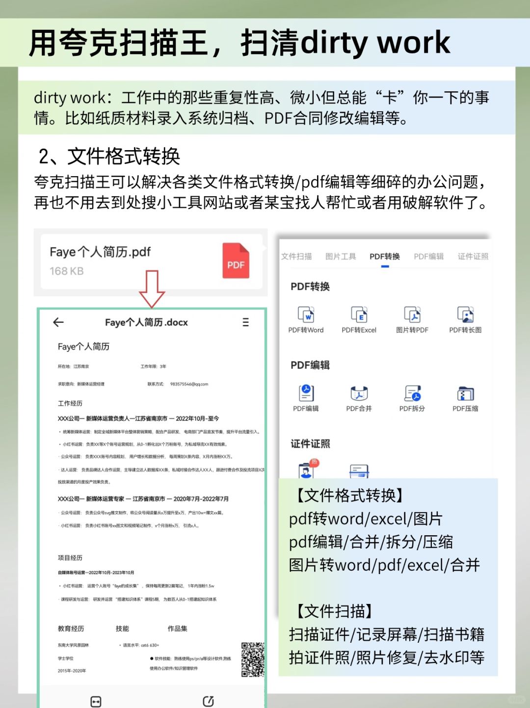 学会用夸克扫描王APP去扫清dirty work,让日常工作流畅没有卡点,我用得做多是以下3个功能: