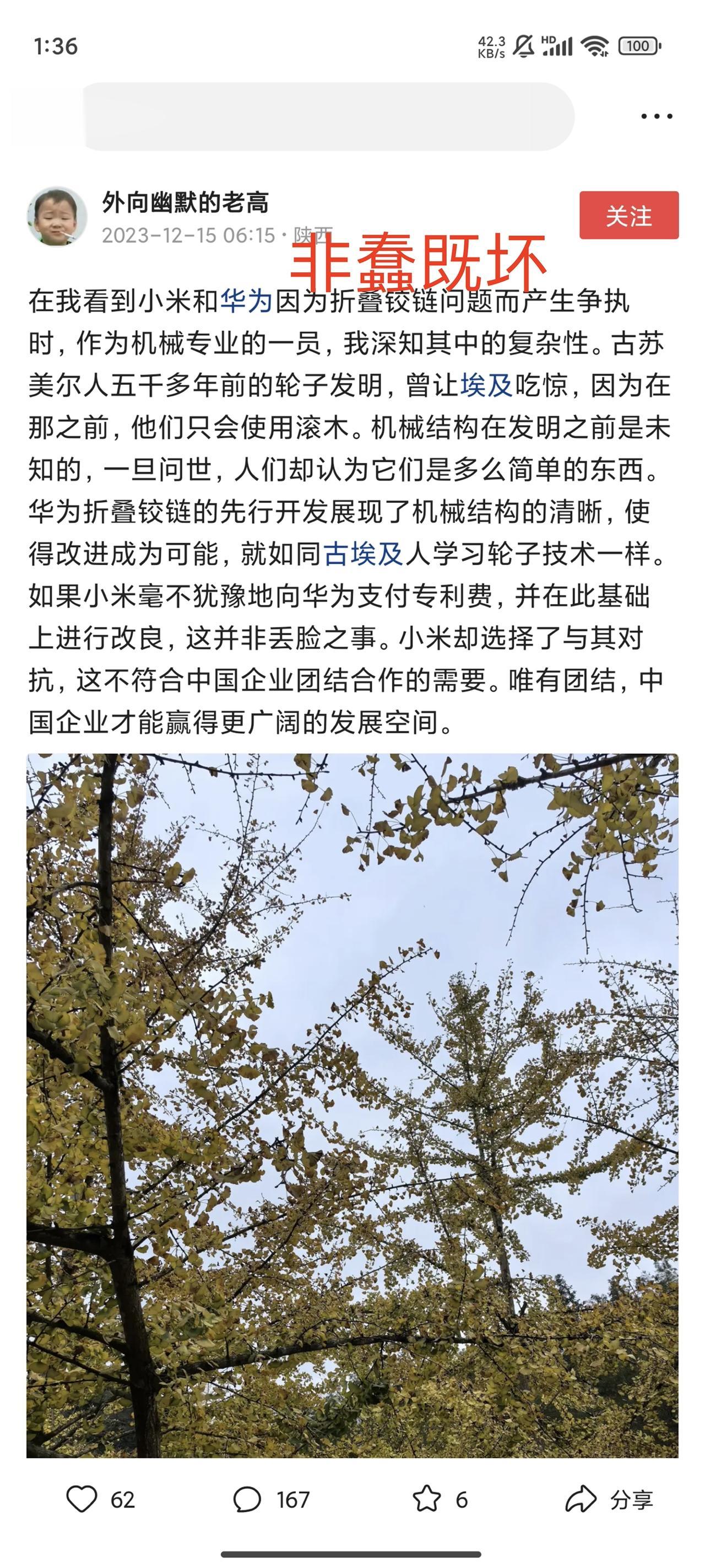 雷军可能没想到,小米一份针对余承东言论的“自卫式”回应,最后被曲解把火引向华为。 近段时间,华为、小米因为折叠屏铰链话题频繁被推上热搜,我也是理一下时间线,知道这里面的来龙去脉,发现事情走向不太可控。起初是余承东在花粉年会这个不正式的场合指责龙骨转轴抄袭华为的水滴铰链,直言龙骨不存在。这段发言被拍成视频传到网上并登上热搜,直接把小米推向风口浪尖,小米委屈啊,人在家中坐,锅从天上来。 于是有了第二阶段,小米实事求是地针对余承东本人回应小米龙骨转轴实为自研。其中就讲清楚了小米的三级杆组龙骨转轴专利申请比华为二级杆组水滴铰链晚10个月,专利公布则早于华为5个月。另一方面,华为的铰链结构从结构上是比小米的要简单,而华为的三级杆组专利还在申请且未公布阶段。所以,小米和华为铰链完全不同,很多人不太明白这其中所谓的抄袭是如何完成的。 面对指责,小米不能视而不见,必须站出来亮明态度,可以看到小米是不愿意与华为产生纷争,但这件事已经对小米产生实质的影响,所以小米仅克制地对言论发表人进行回应,而现在是一些网友挑起对立,搅浑水使其上升到小米与华为之间的矛盾,让事情变得更复杂。我认为如果还是一方坚持认为抄袭,另一方认为不抄袭,不妨大家都以正当的方式维护自身权益,而不是打嘴仗,让消费者跟着节奏来回折腾。否则应该尽快让事件平息下来,保持国产品牌的团结,各美其美,美美与共。#小米华为再打专利“隔空口水战”#