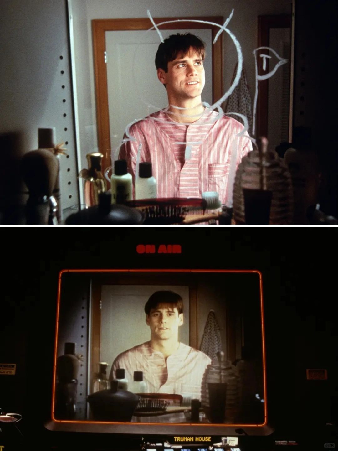 楚门,从出生到成年,每一分每一秒都被视频监控,而监控的视频居然是直播给全球观众观看的。